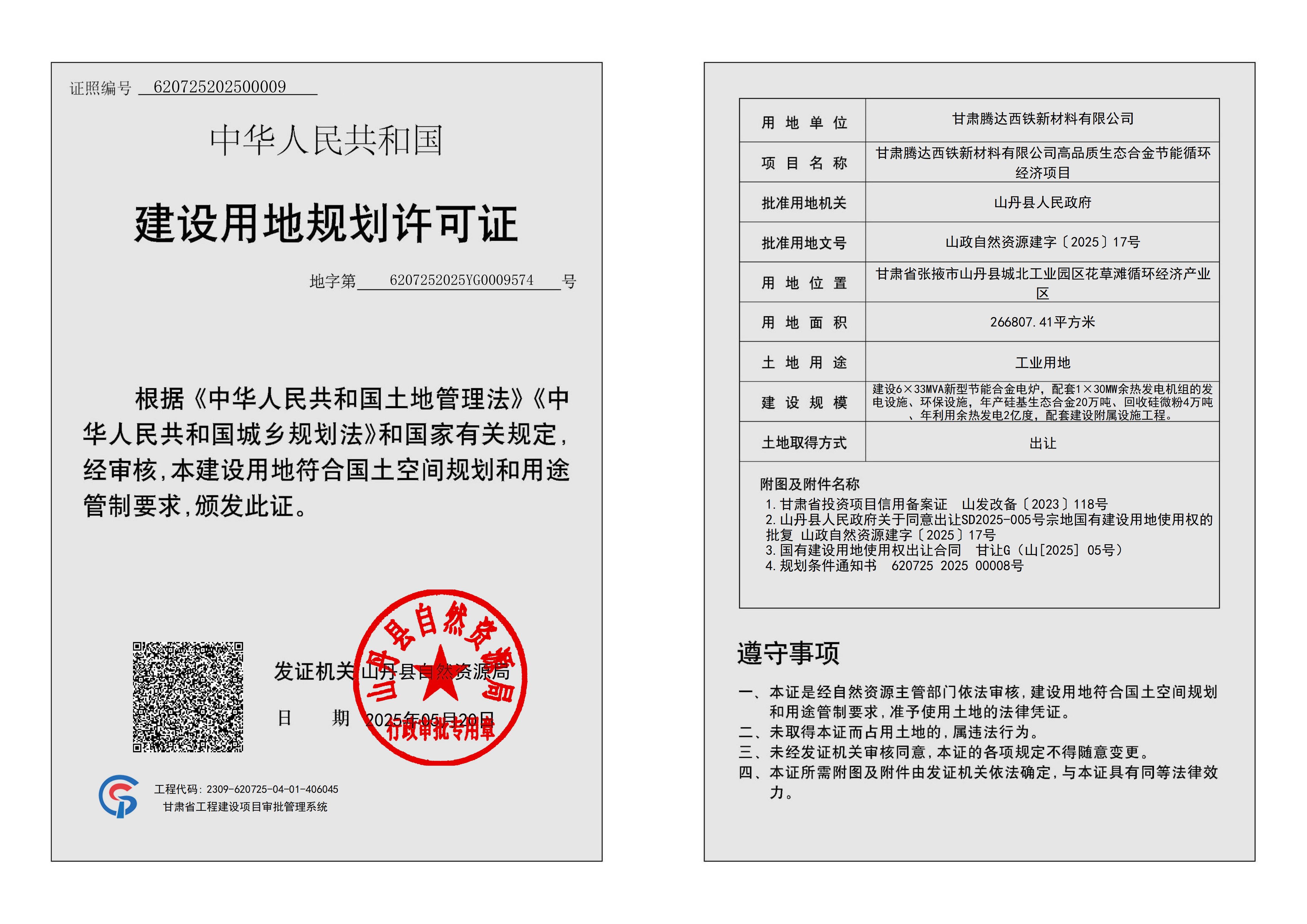 甘肃腾达西铁新材料有限公司高品质生态合金节能循环经济项目建设用地规划许可证