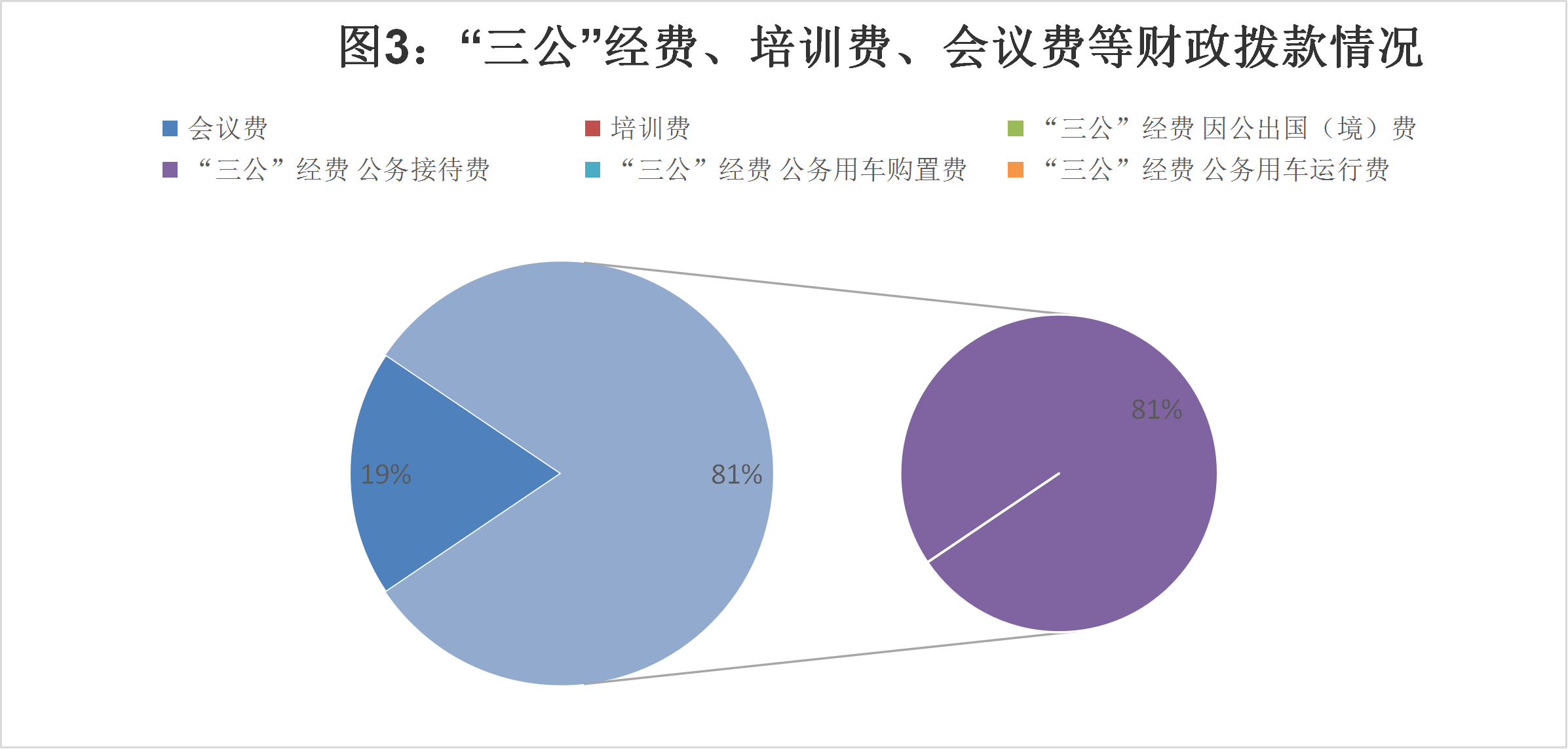 7、“三公”经费:指因公出国(境)费、公务用车购置及运行维护费和公务接待费。其中,因公出国(境)费反映单位公务出国(境)的国际旅费、国外城市间交通费、住宿费、伙食费、培训费、公杂费等支出;公务用车运行维护费反映单位按规定保留的公务用车租用费、燃料费、维修费、过路过桥费、保险费、安全奖励费用等支出;公务接待费反映单位按规定开支的各类公务接待(含外宾接待)支出。