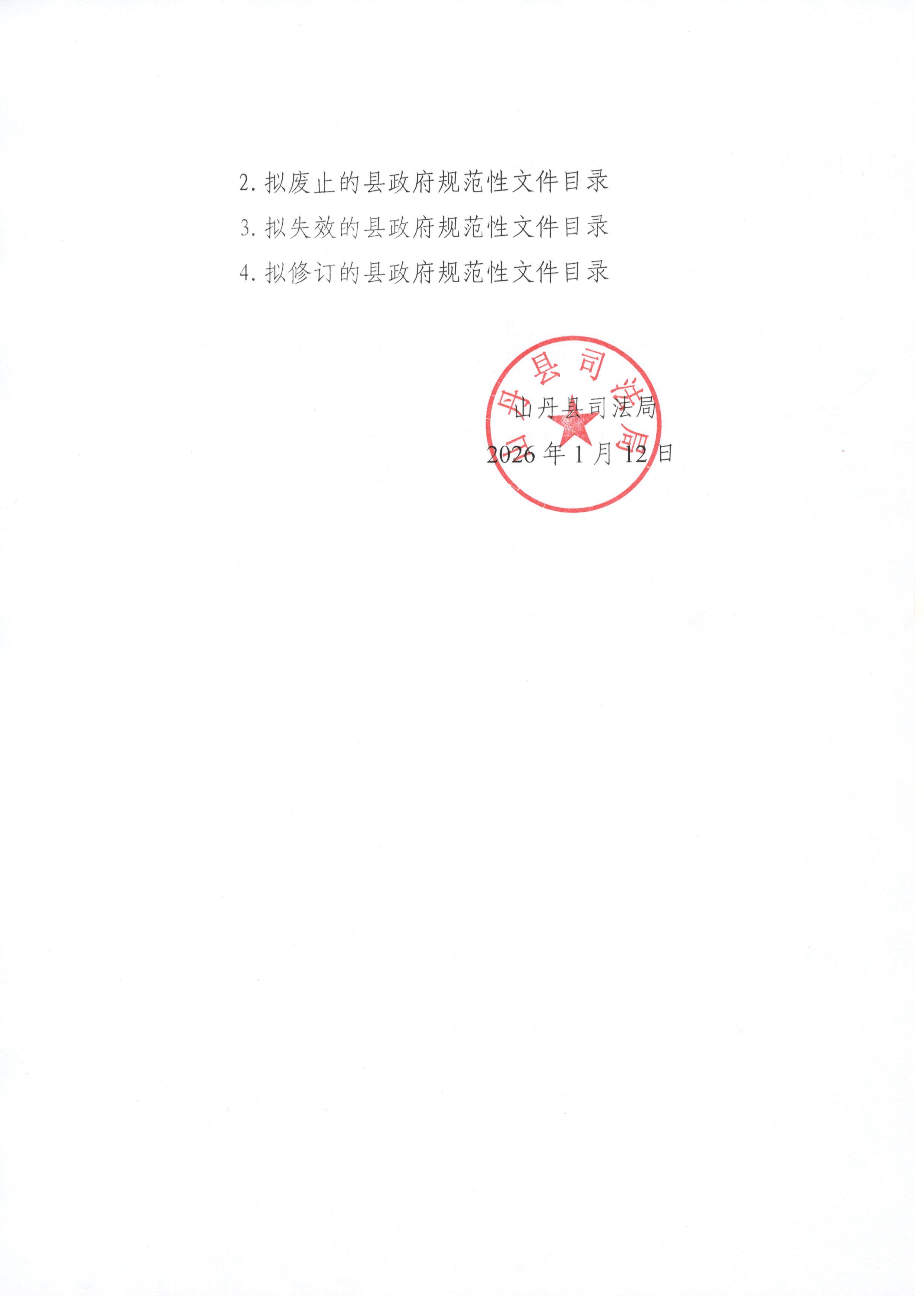 山丹县司法局关于征求县政府行政规范性文件清理结果(征求意见稿)意见的函
