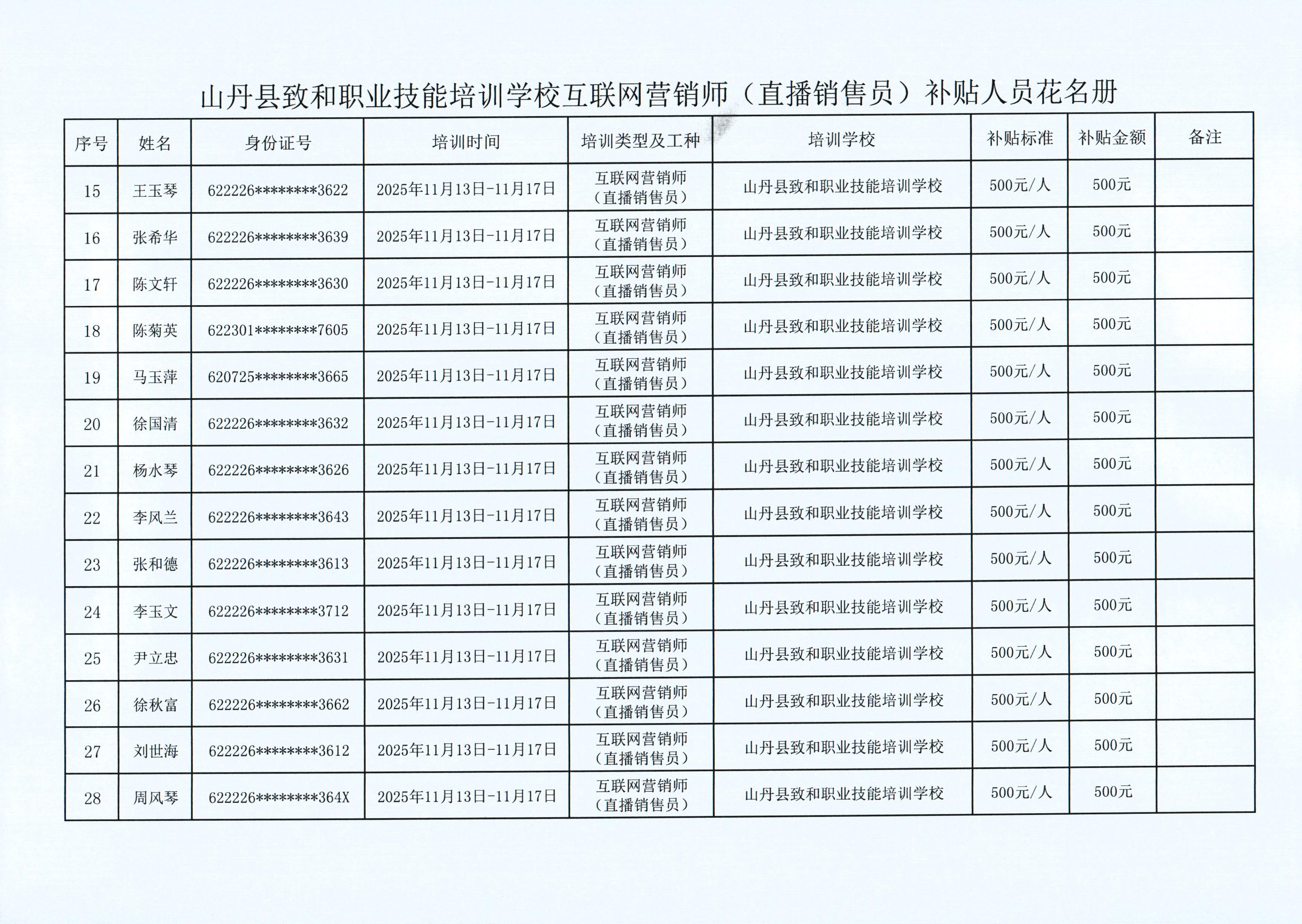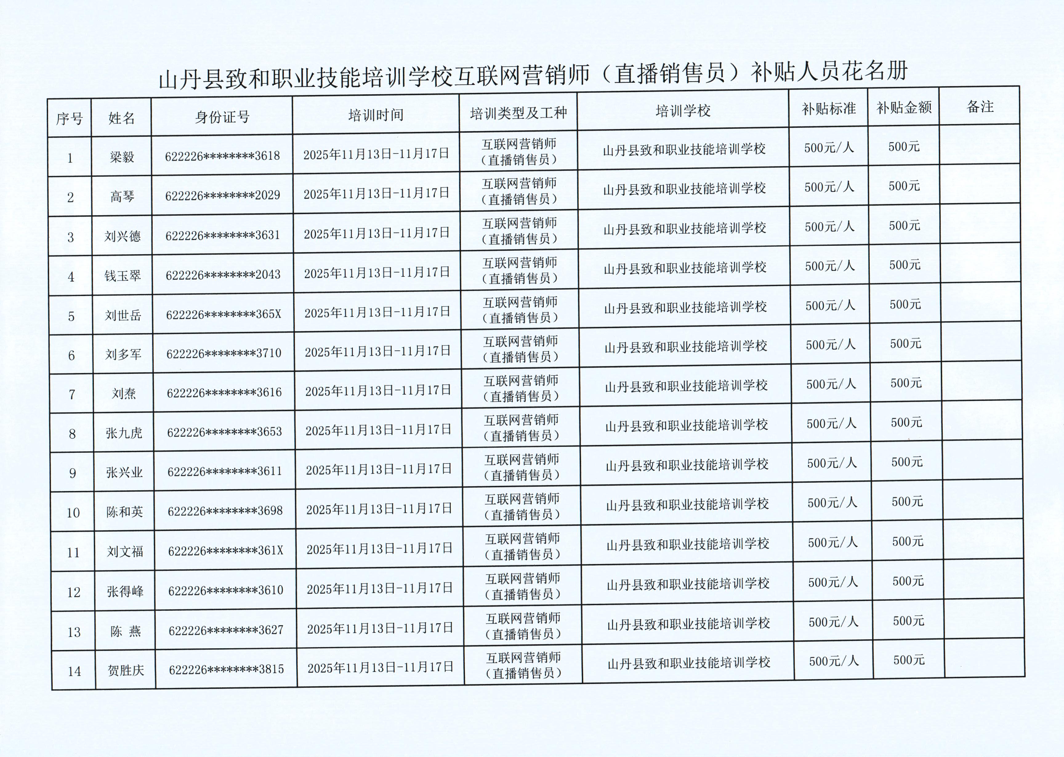 关于2025年项目化职业技能培训补贴情况的公示
