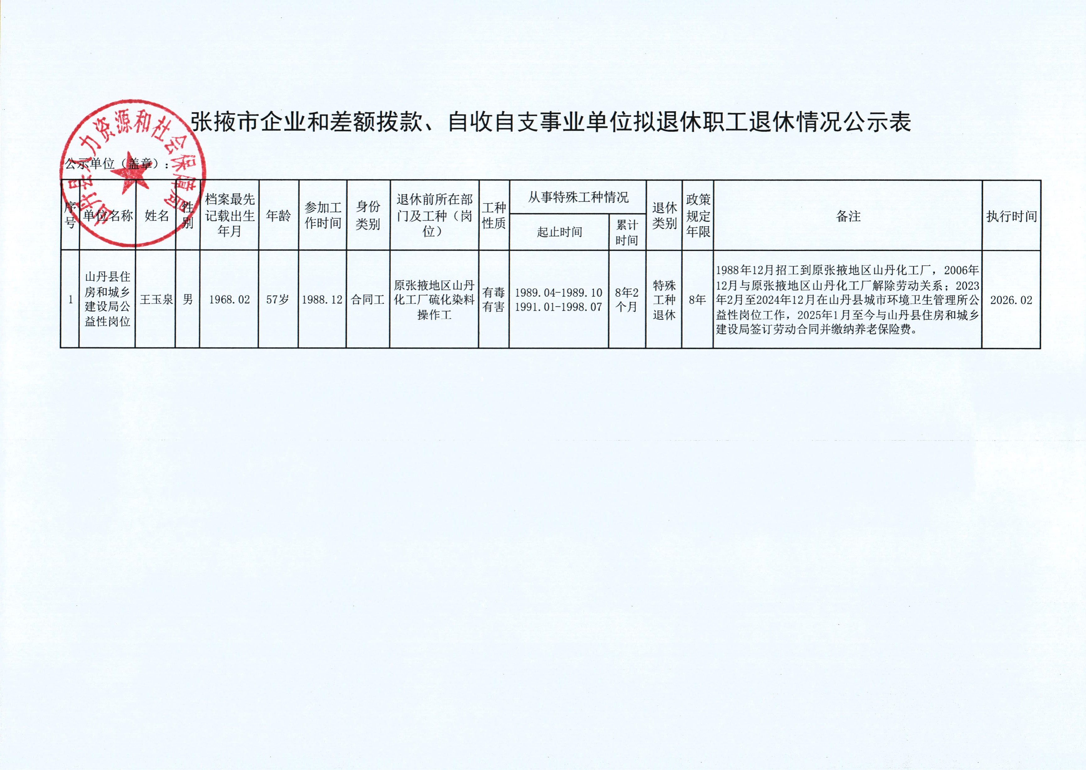 关于对2026年1月企业拟提前退休职工的公示