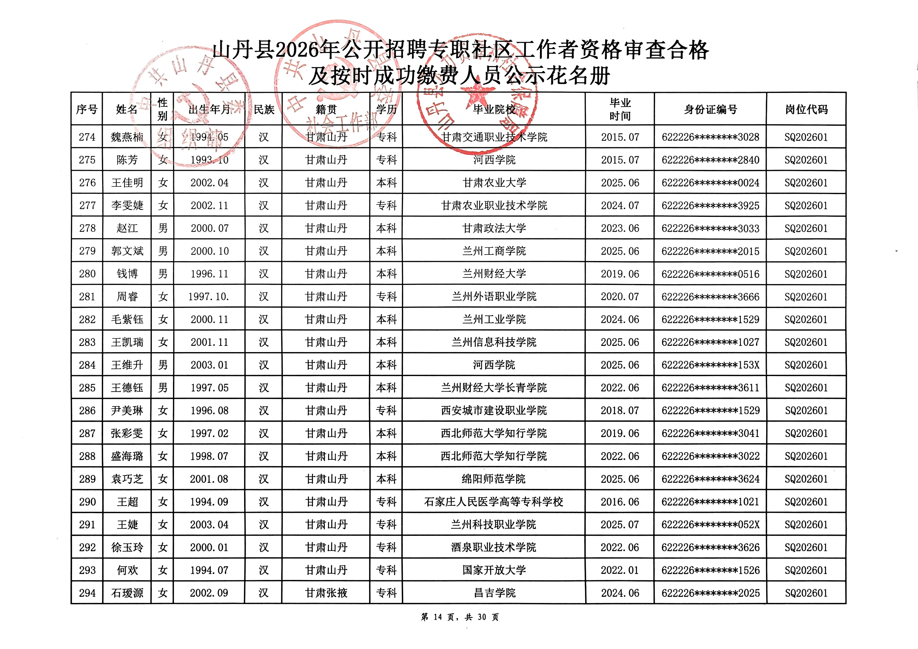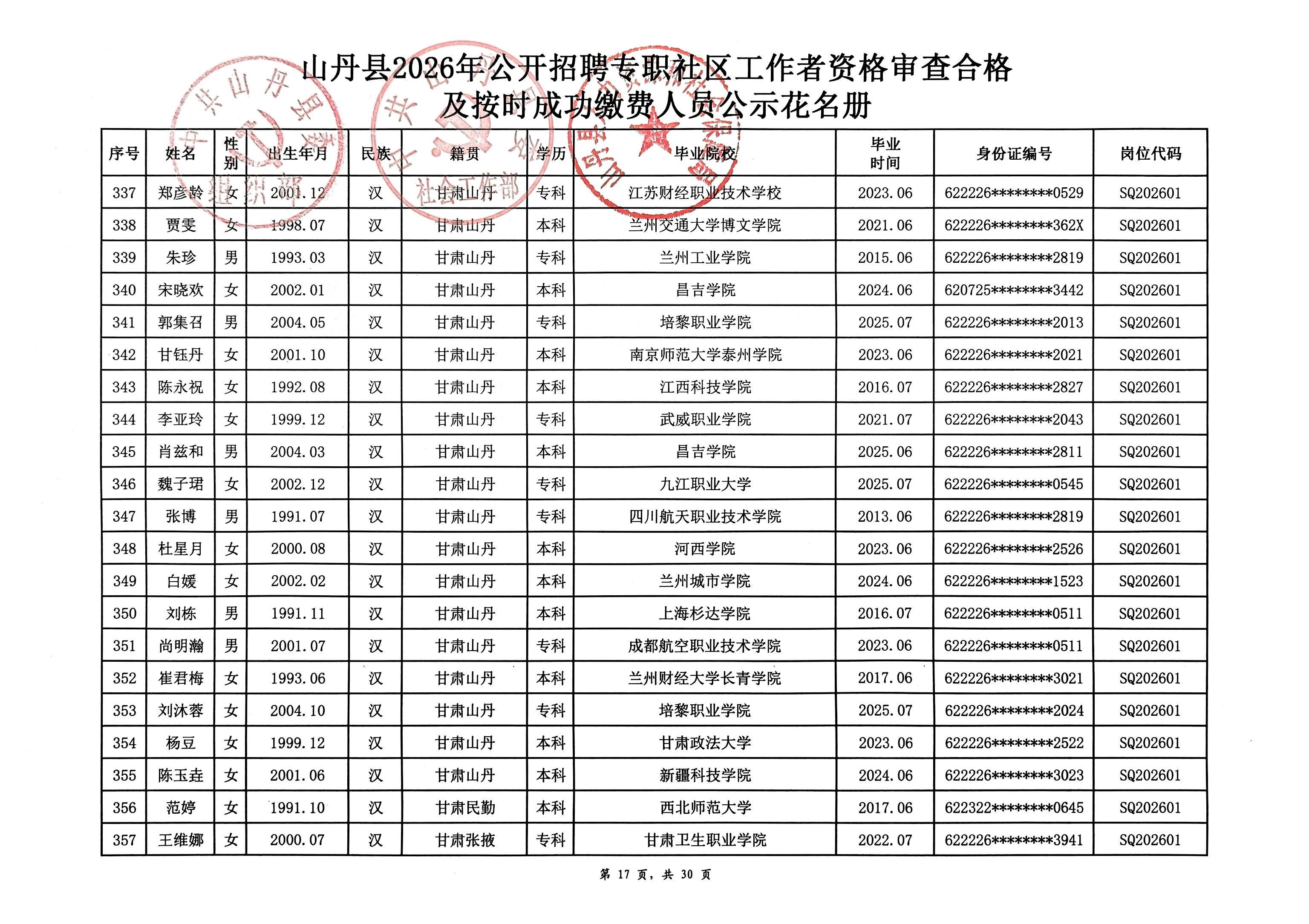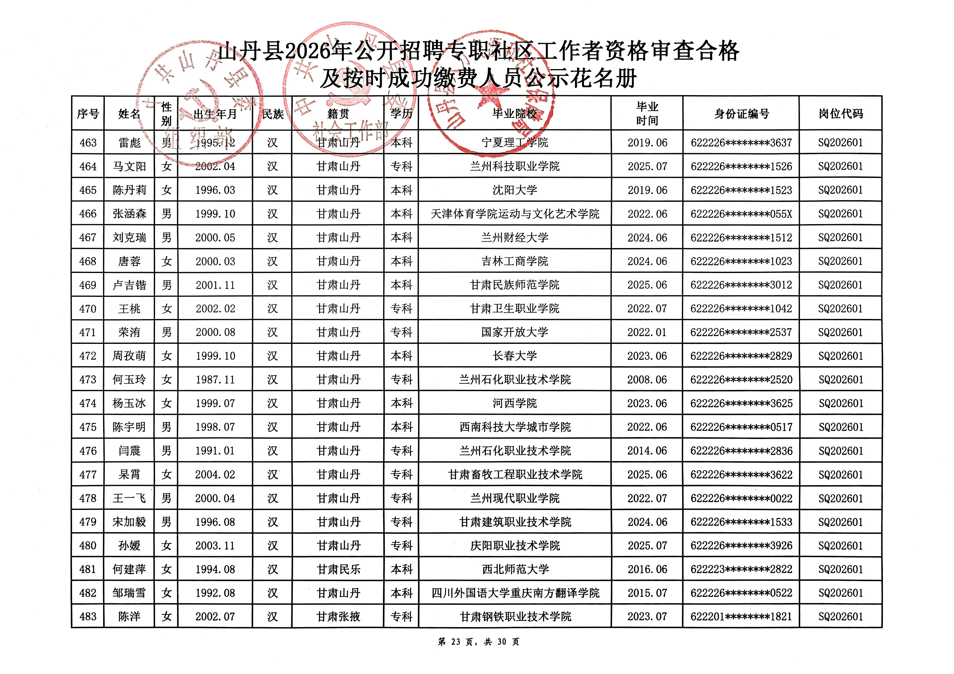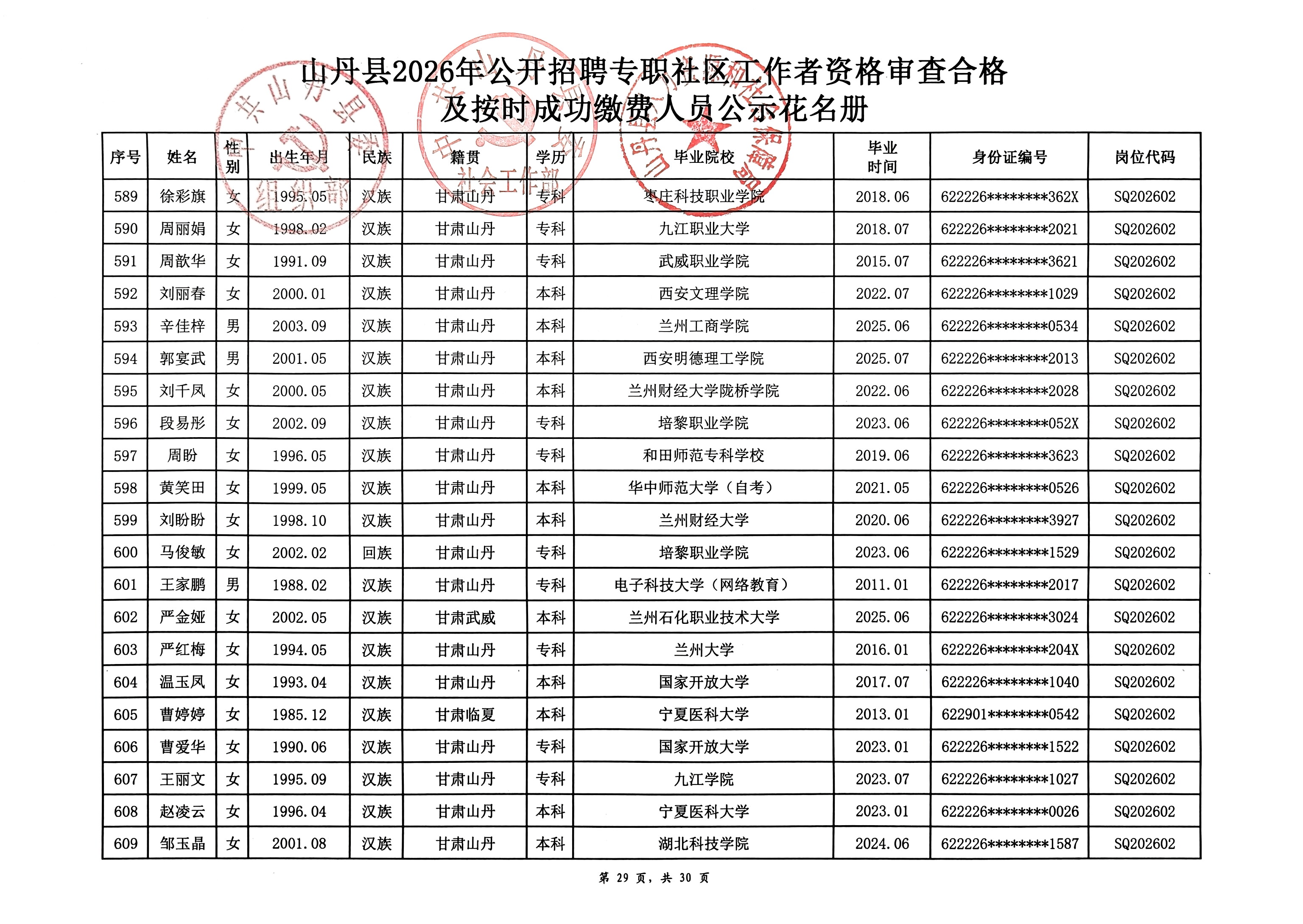 山丹县2026年公开招聘专职社区工作者公告(二)