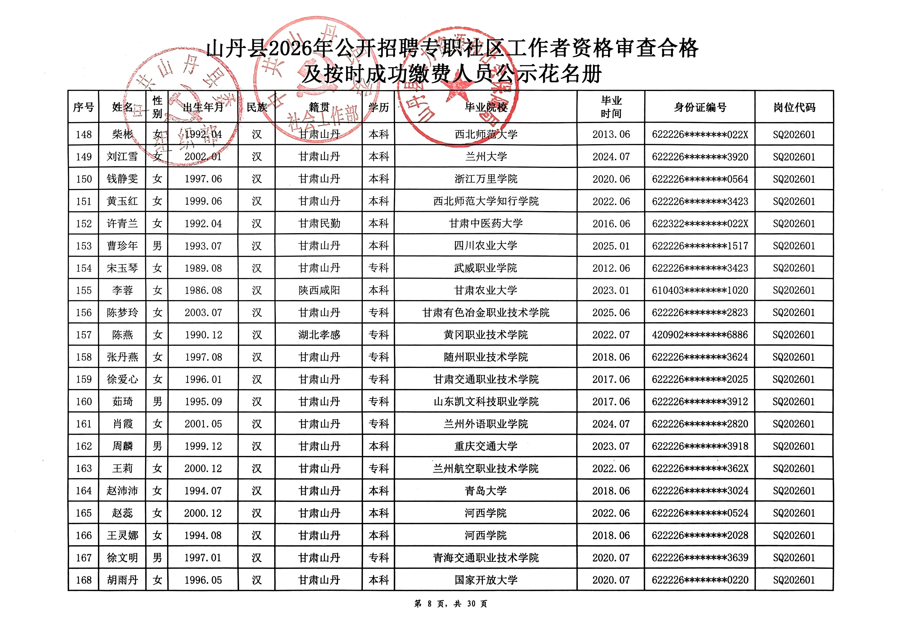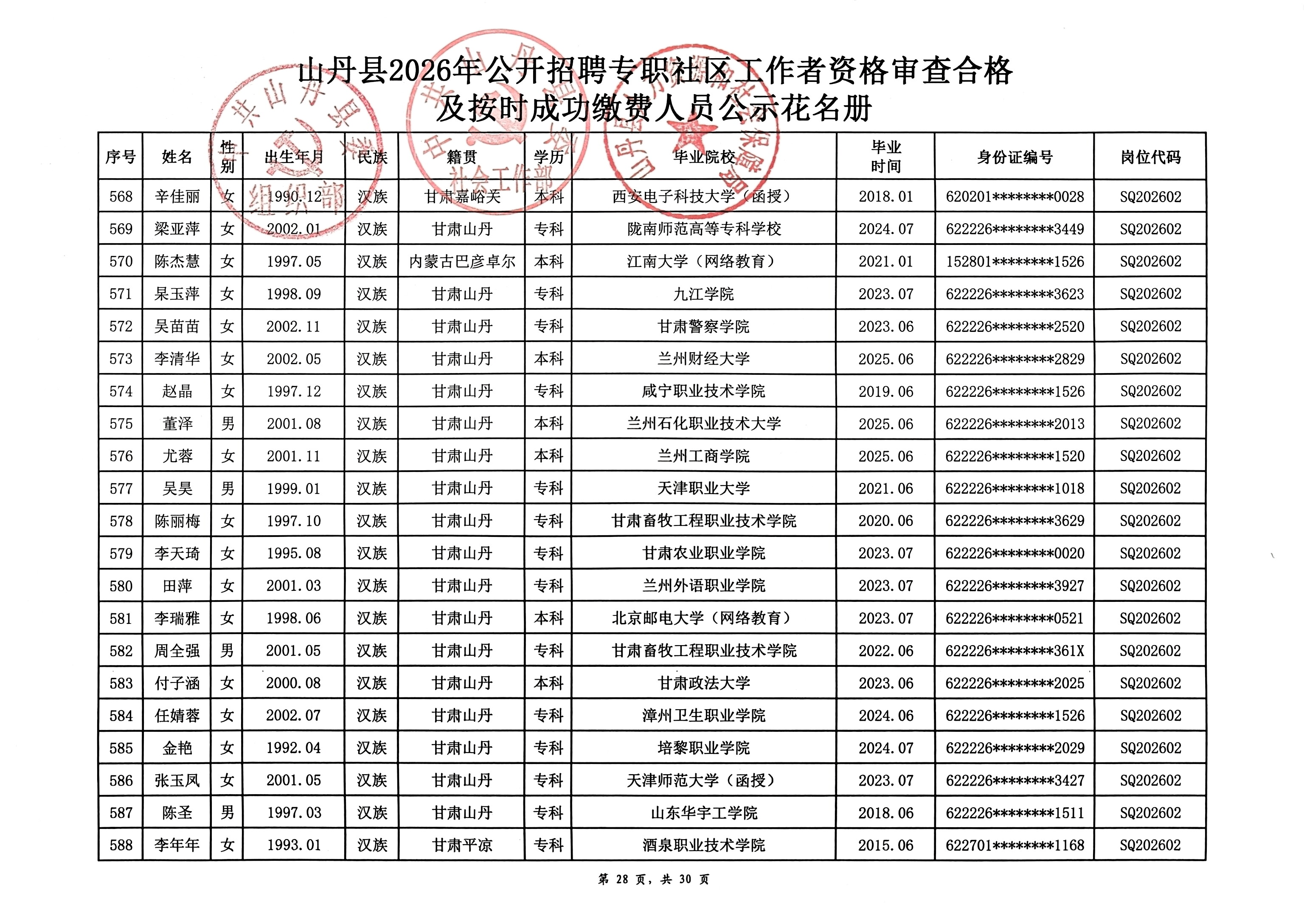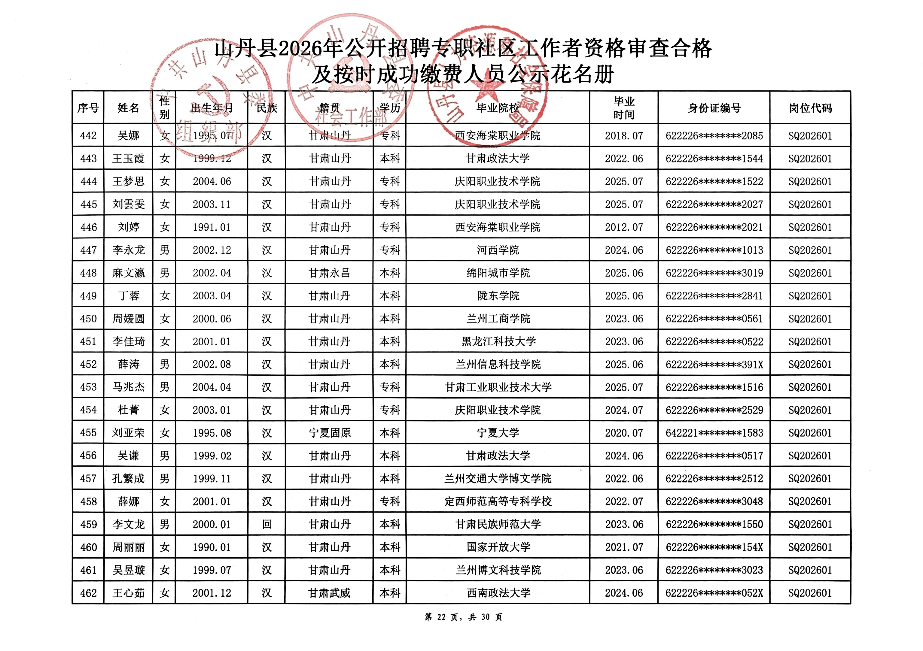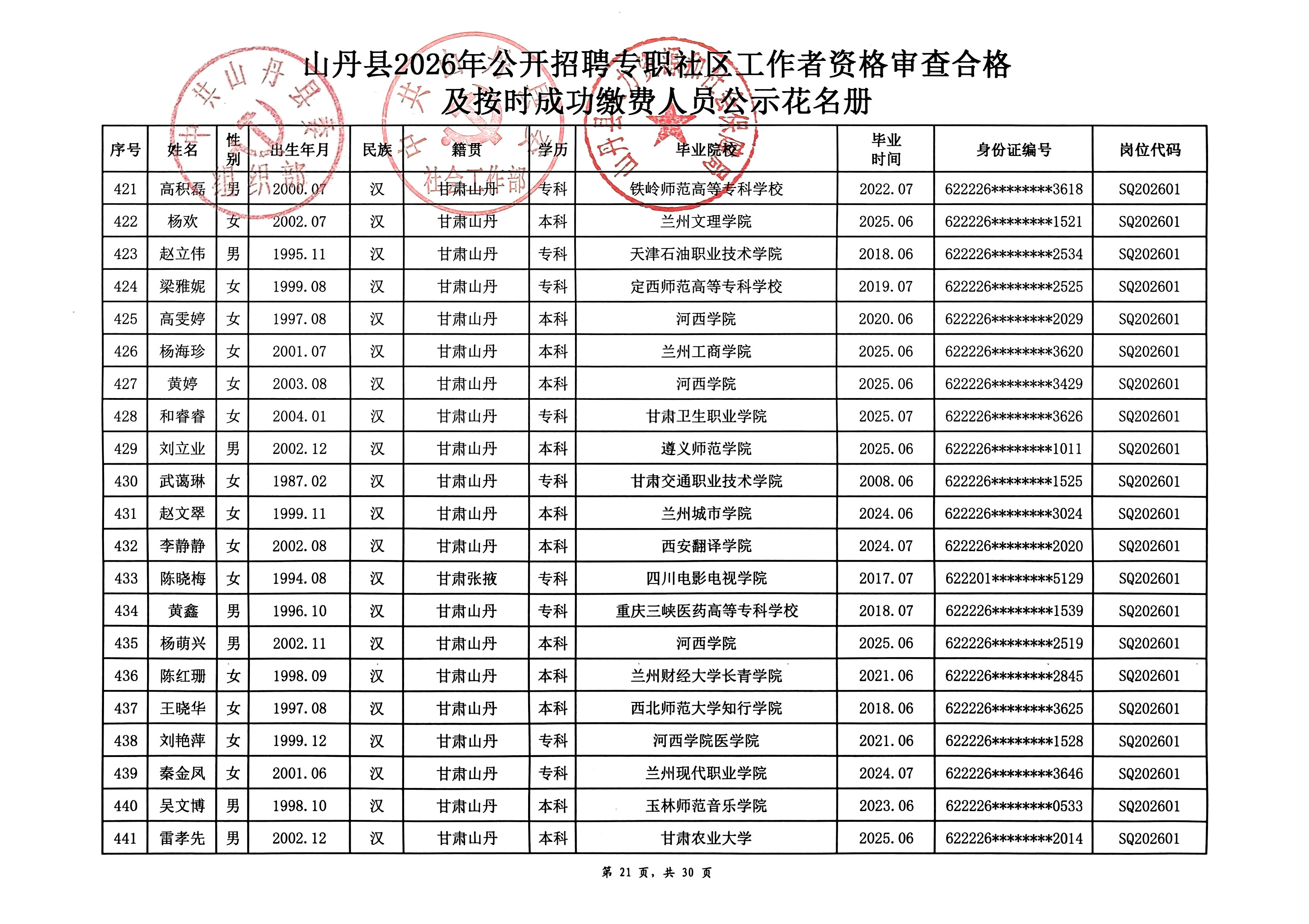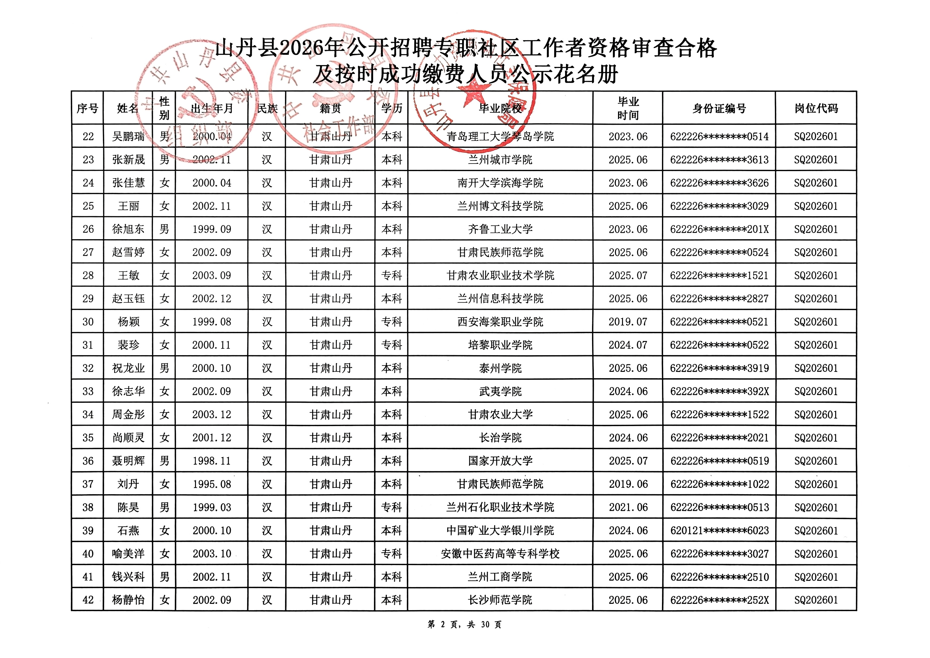 山丹县2026年公开招聘专职社区工作者公告(二)