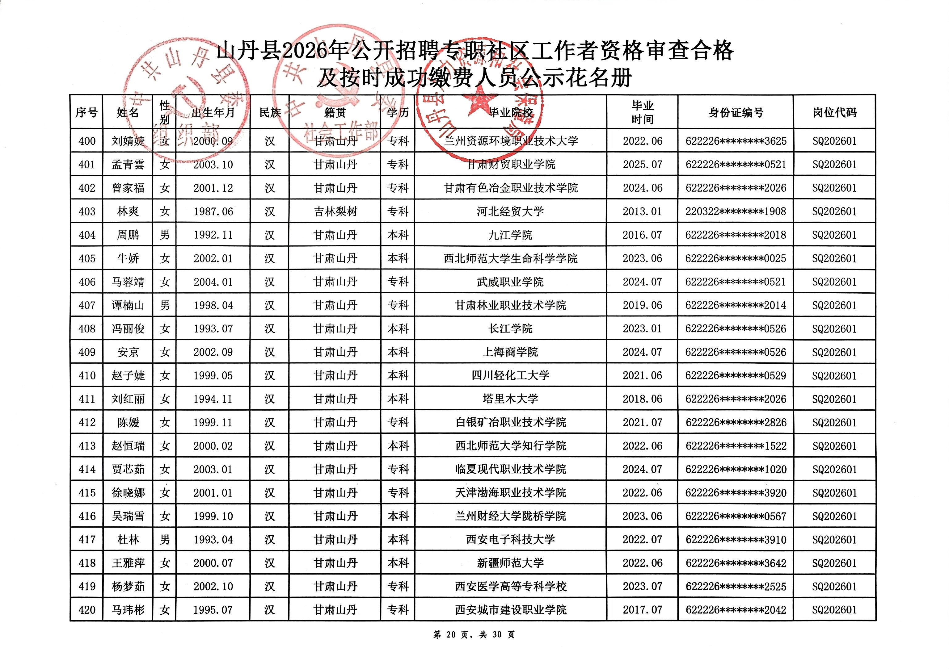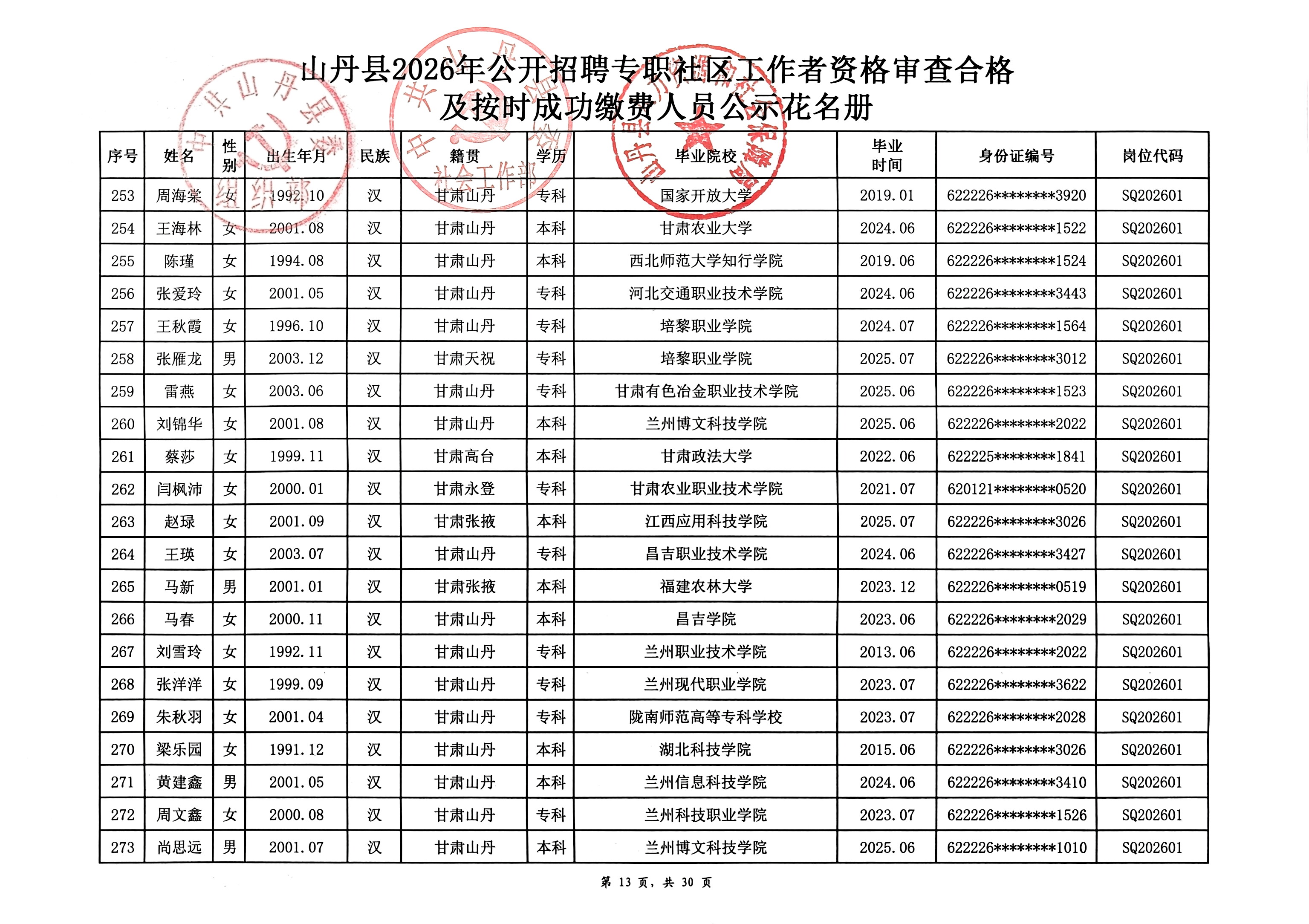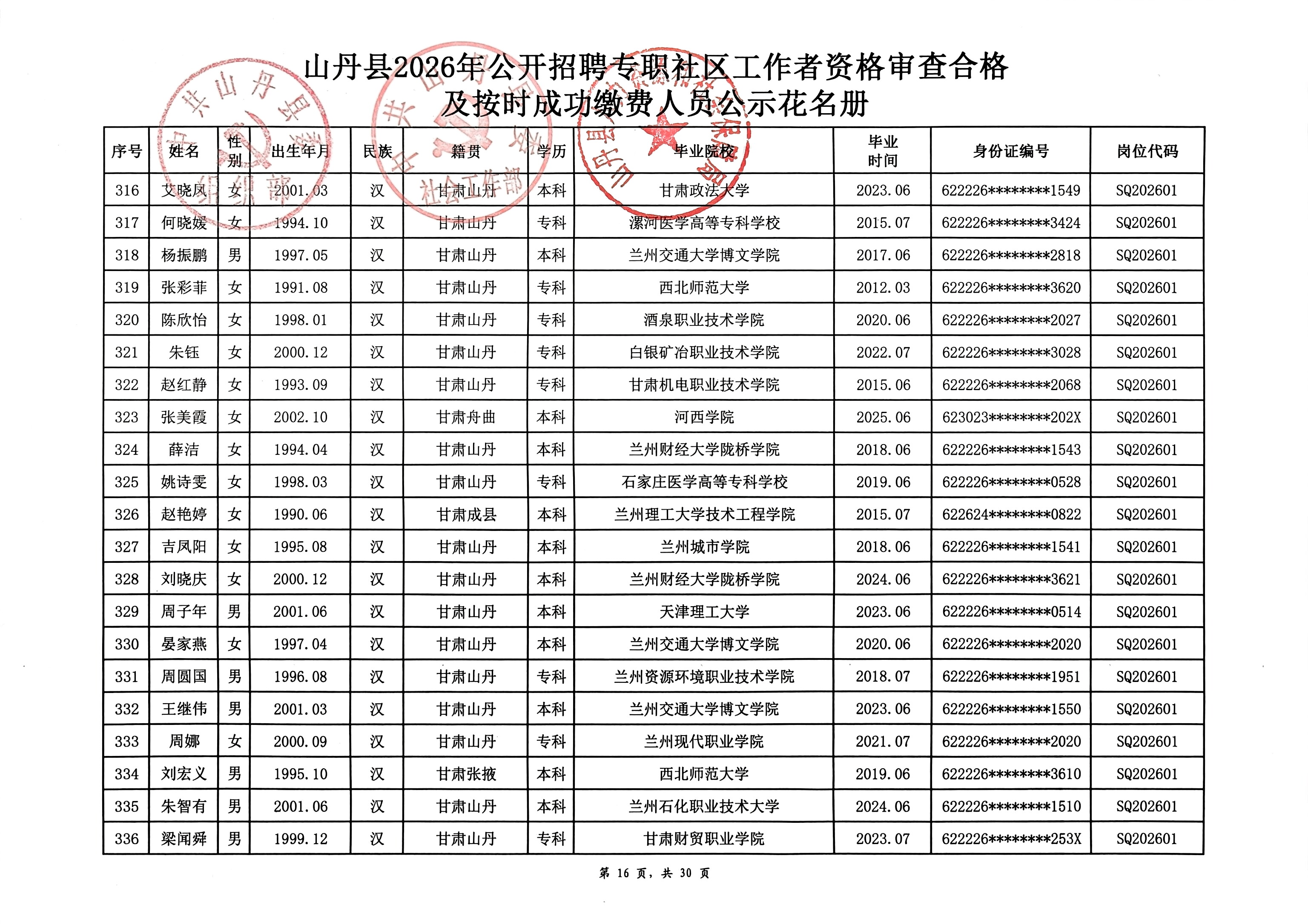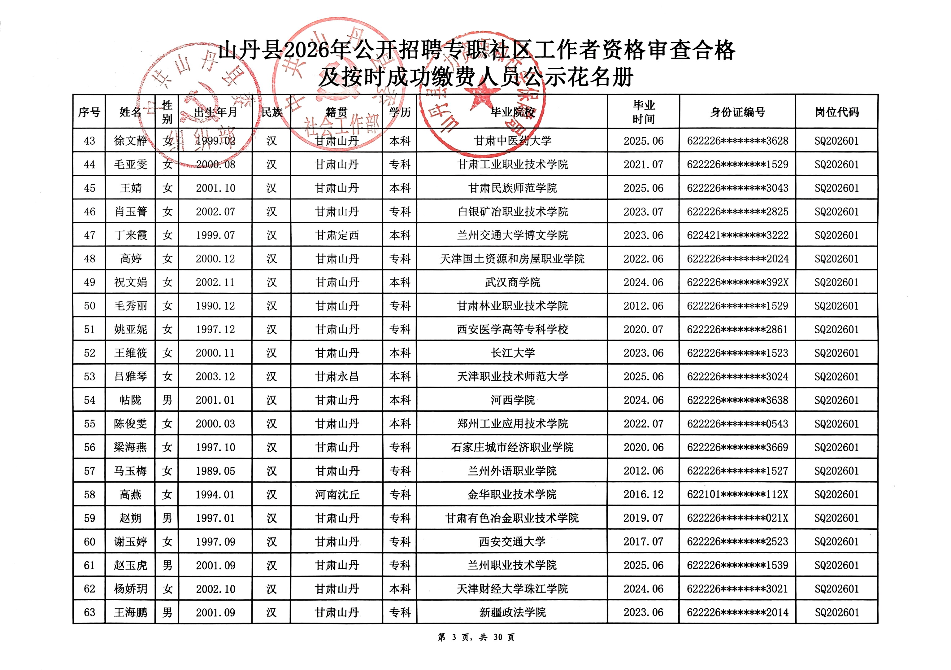 山丹县2026年公开招聘专职社区工作者公告(二)