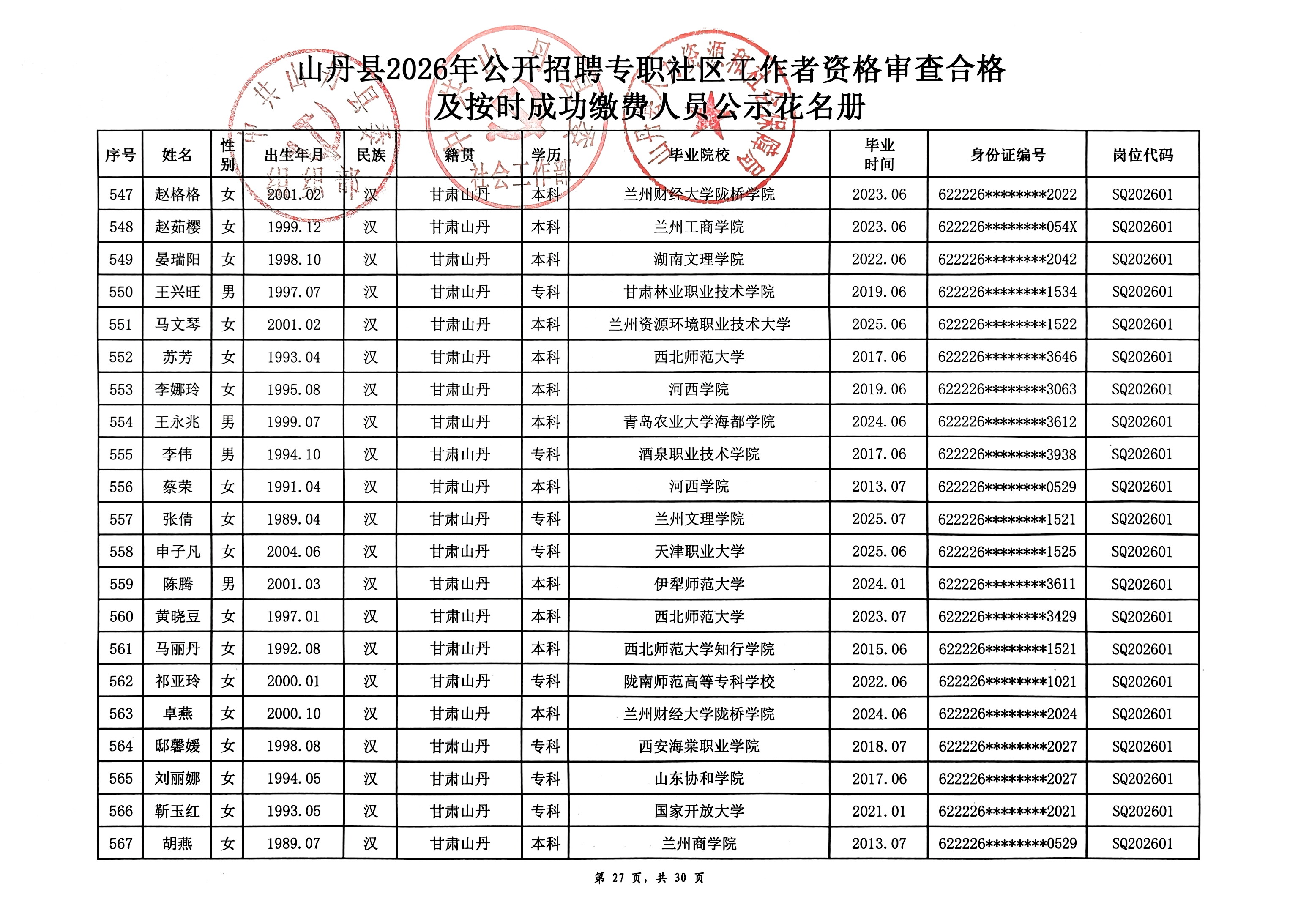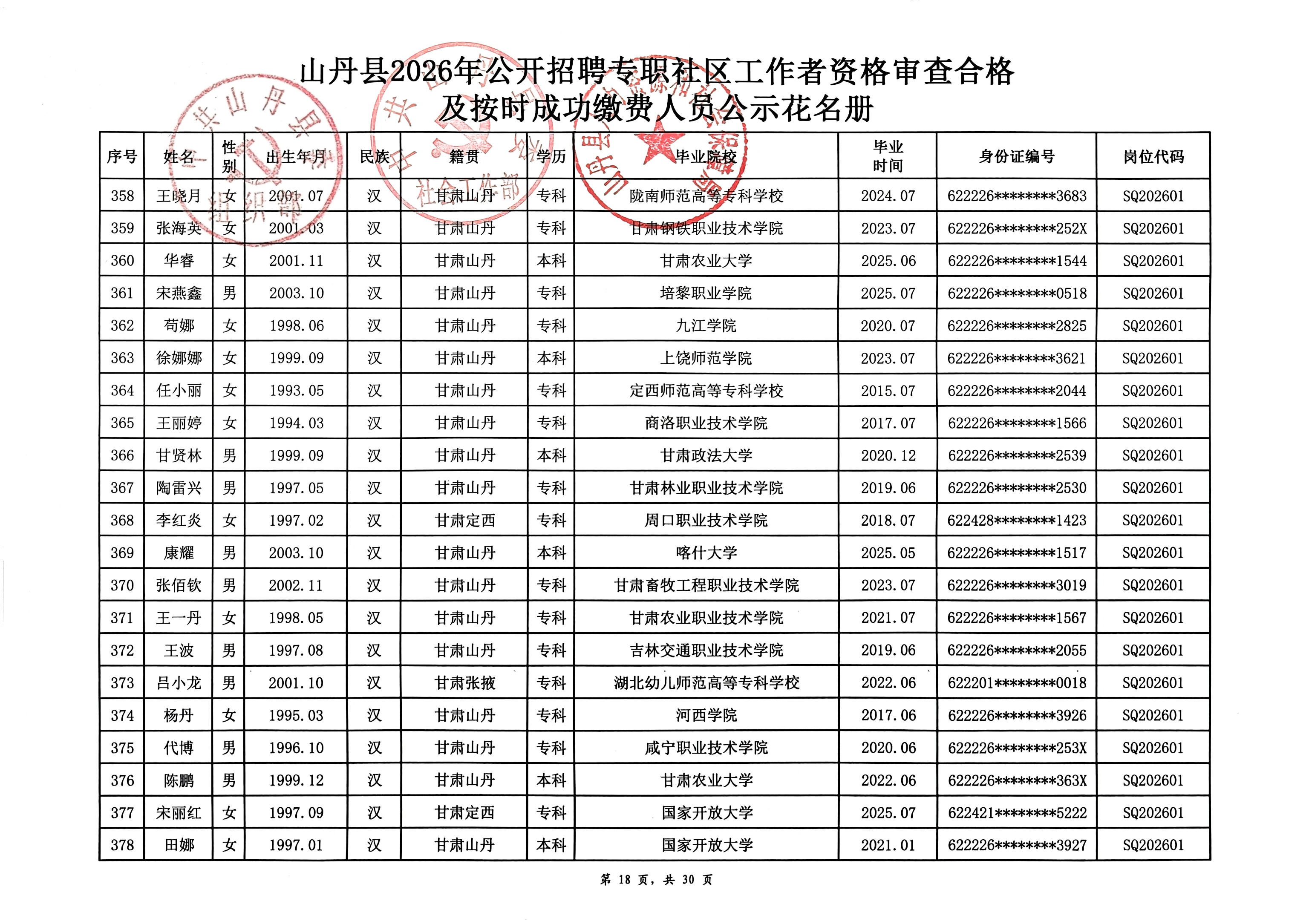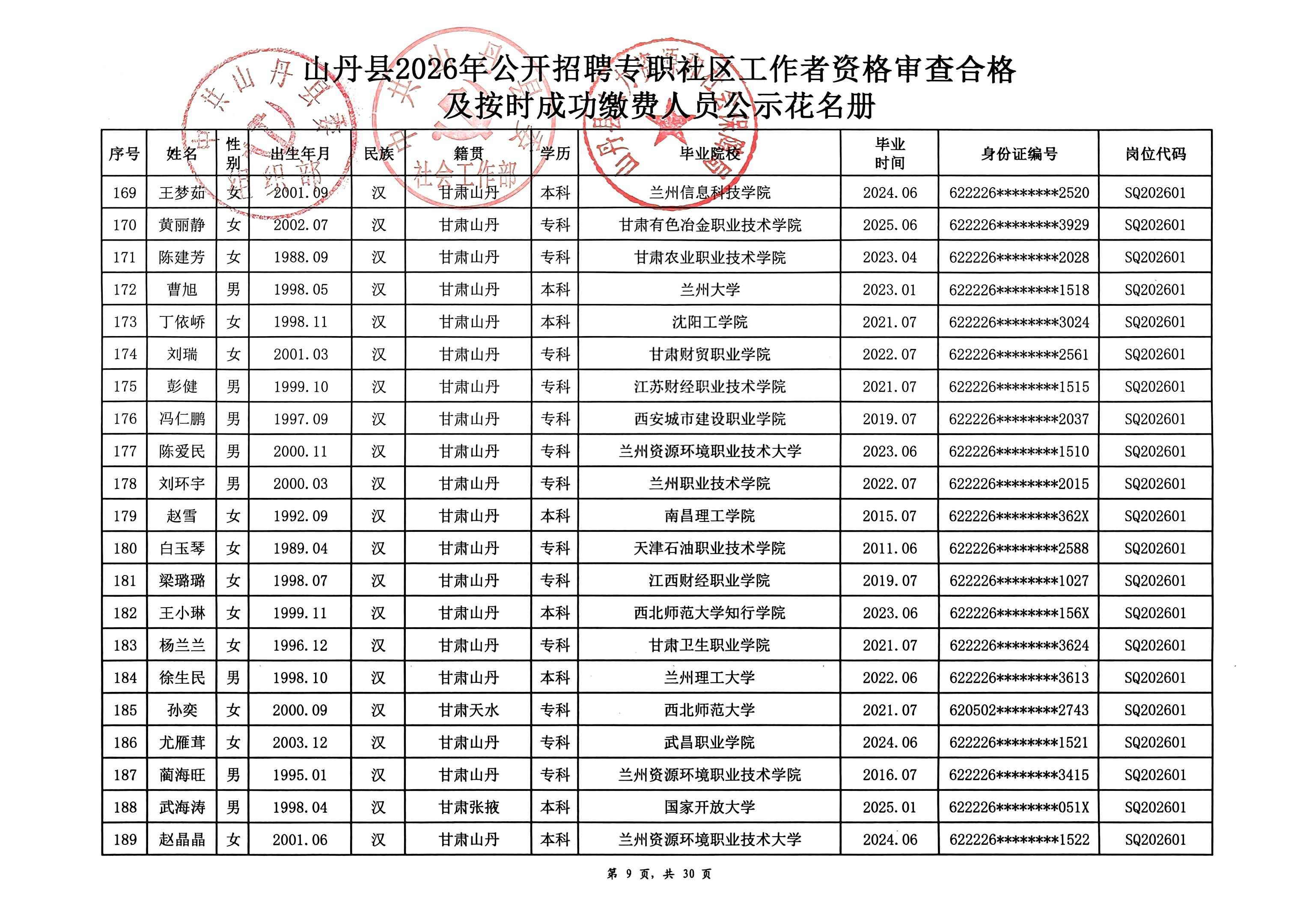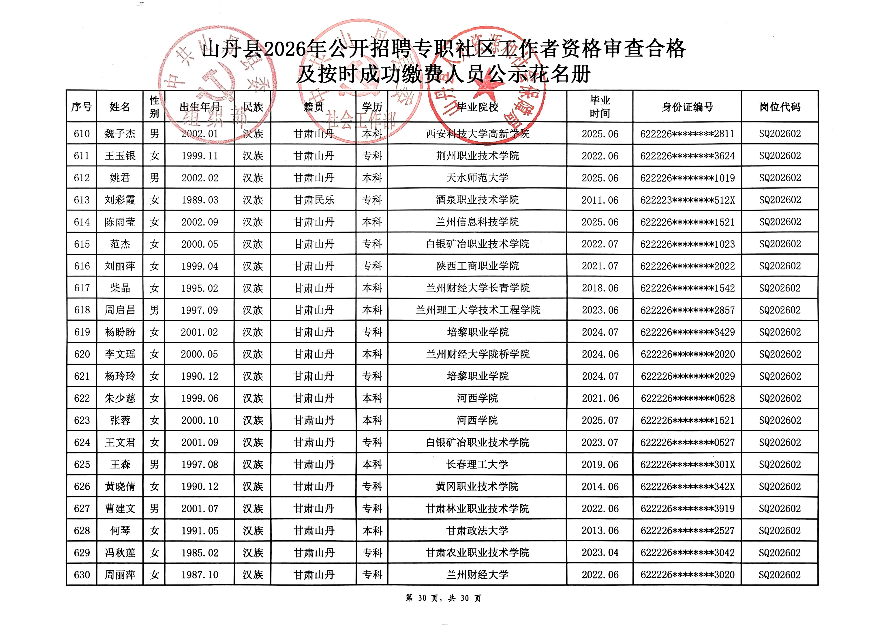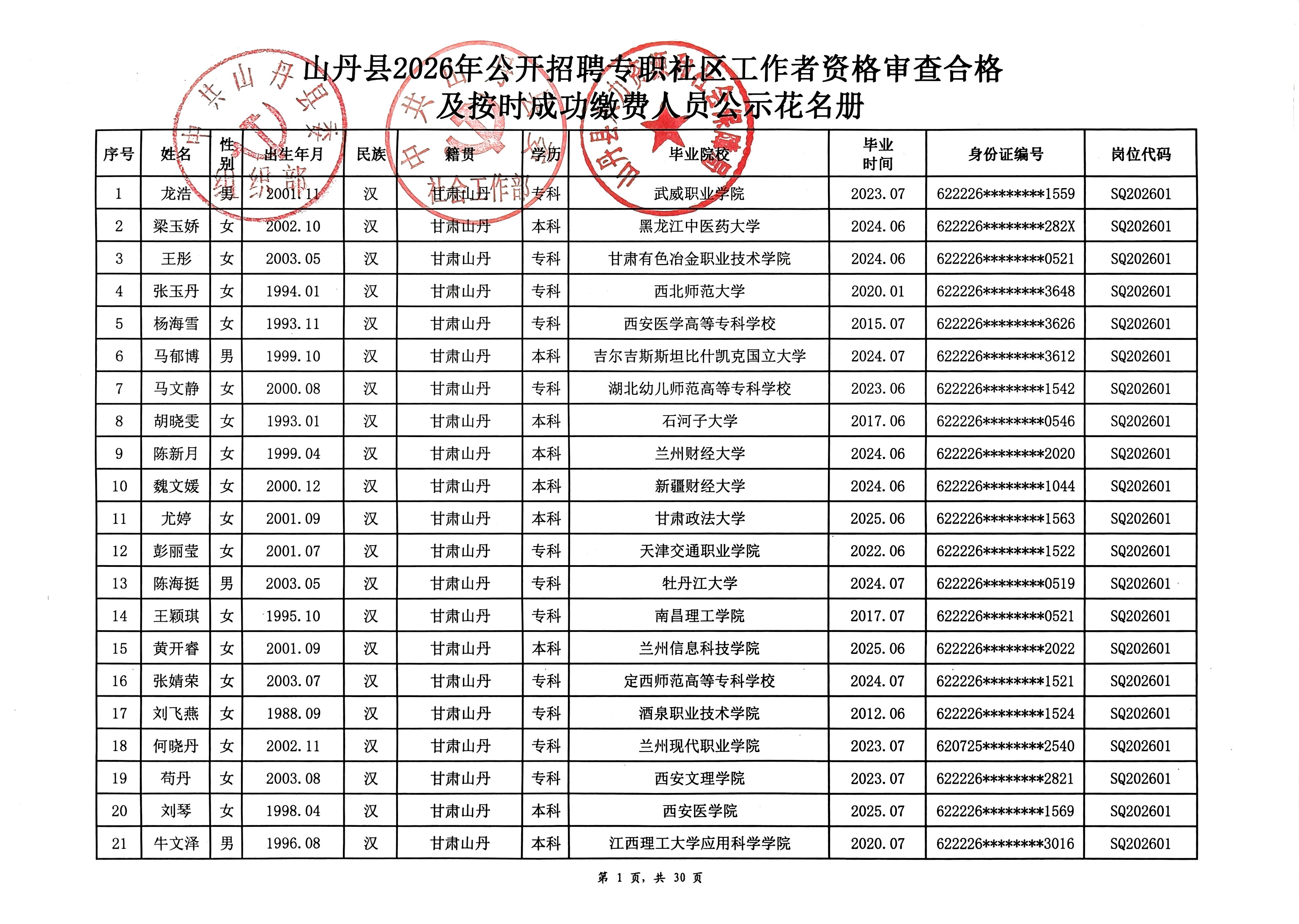 山丹县2026年公开招聘专职社区工作者公告(二)