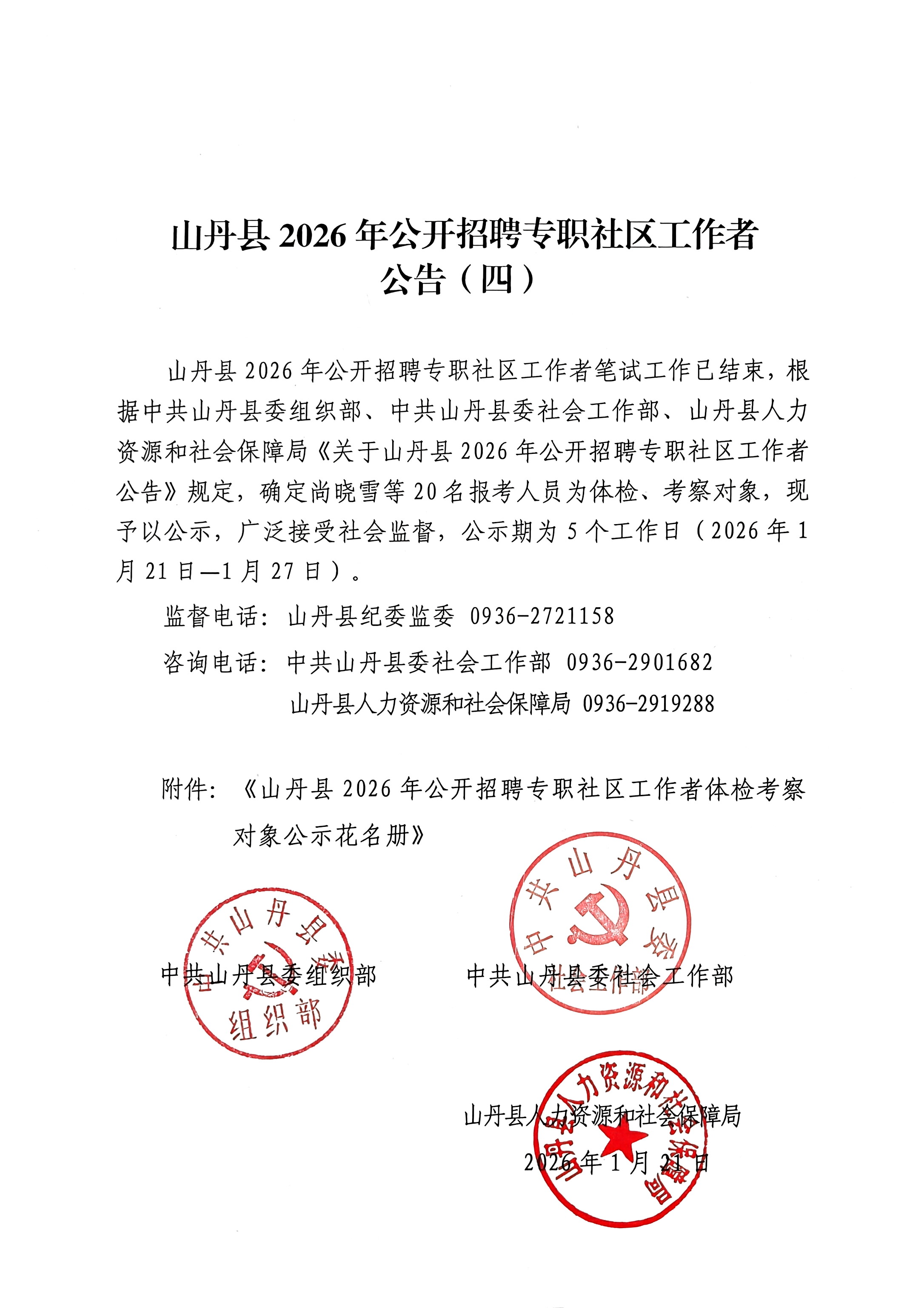 山丹县2026年公开招聘专职社区工作者公告(四)