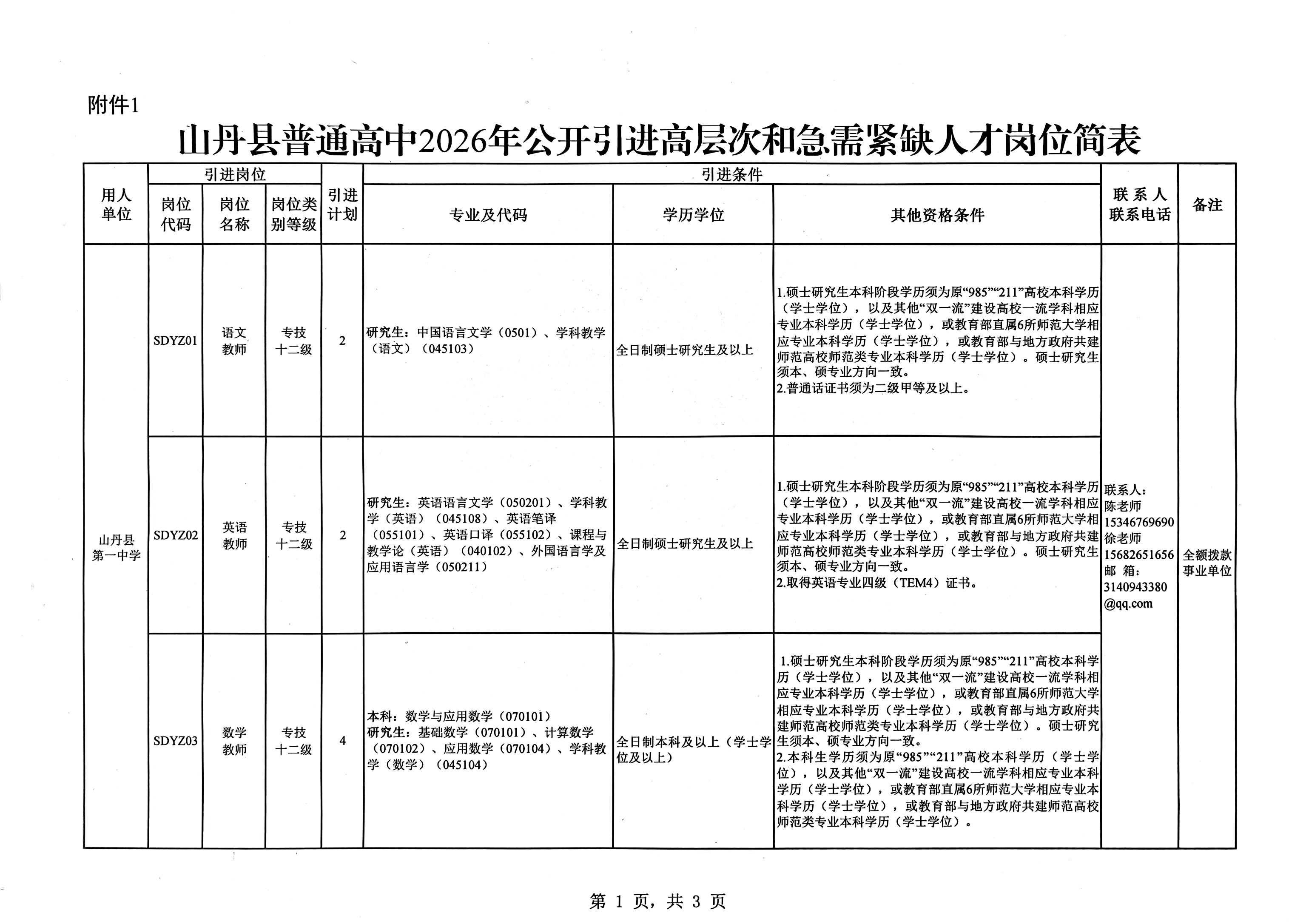 关于山丹县普通高中2026年公开引进高层次和急需紧缺人才公告