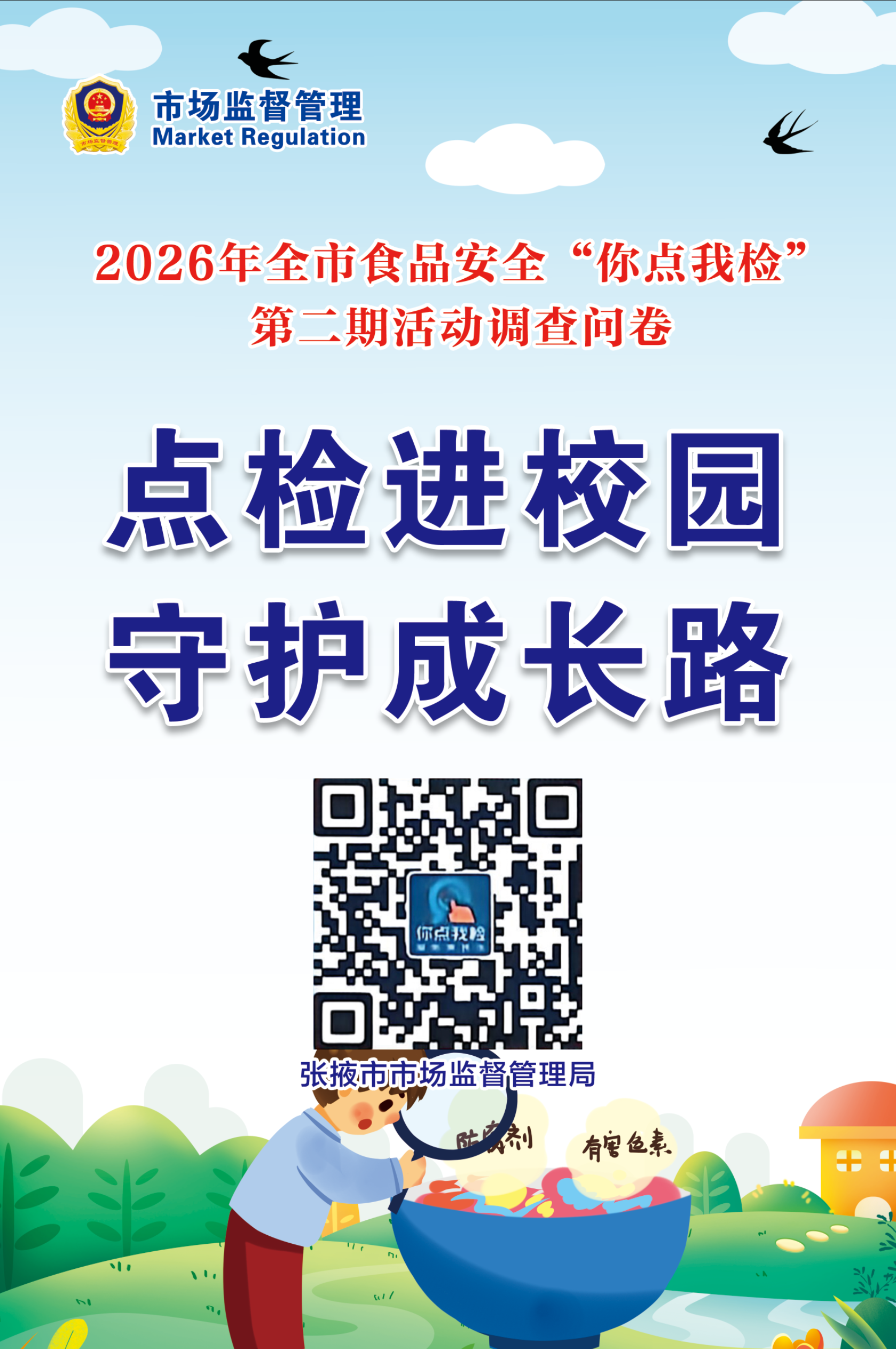 民意征集时间:2026年3月1日—3月15日。诚邀您扫描二维码进入问卷,选择最关心的食品品种提交。我们将统计分析民意,锁定高关注食品开展针对性抽检,消除安全隐患,守护“舌尖上的安全”。