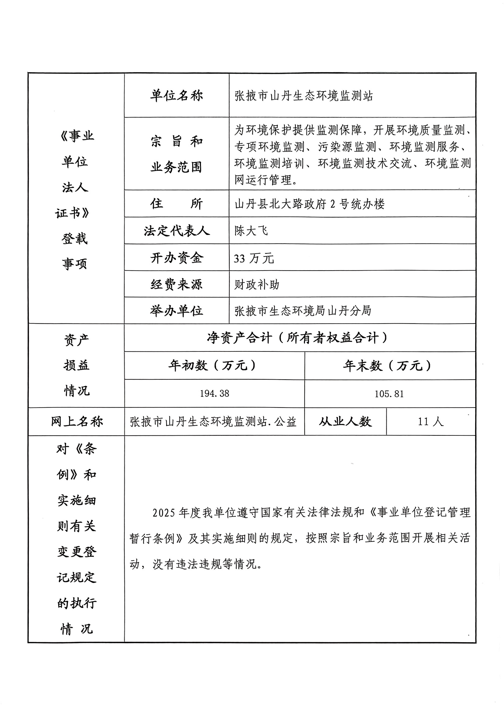 张掖市山丹生态环境监测站事业单位法人年度报告书(2025年)