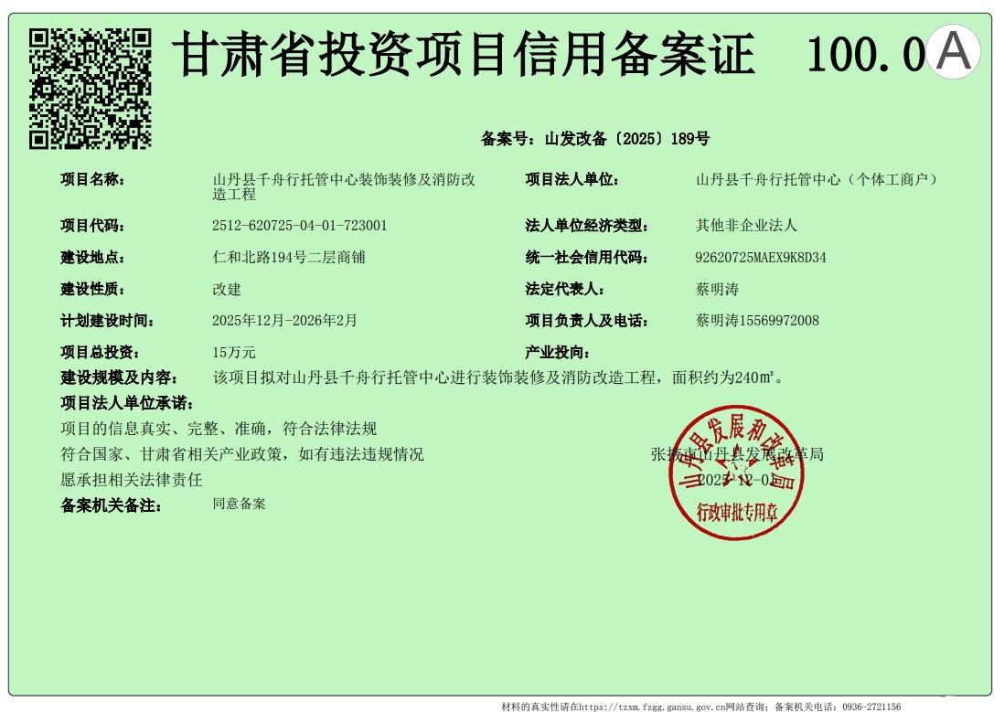 山丹县千舟行托管中心装饰装修及消防改造工程