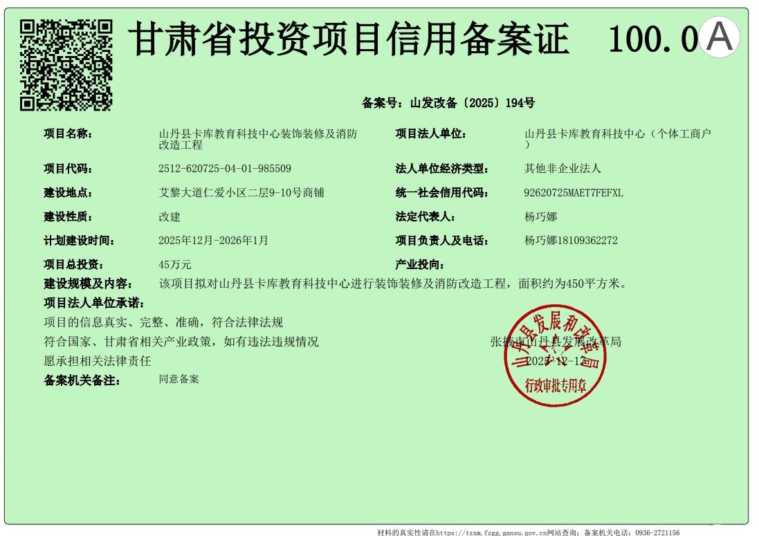 山丹县卡库教育科技中心装饰装修及消防改造工程
