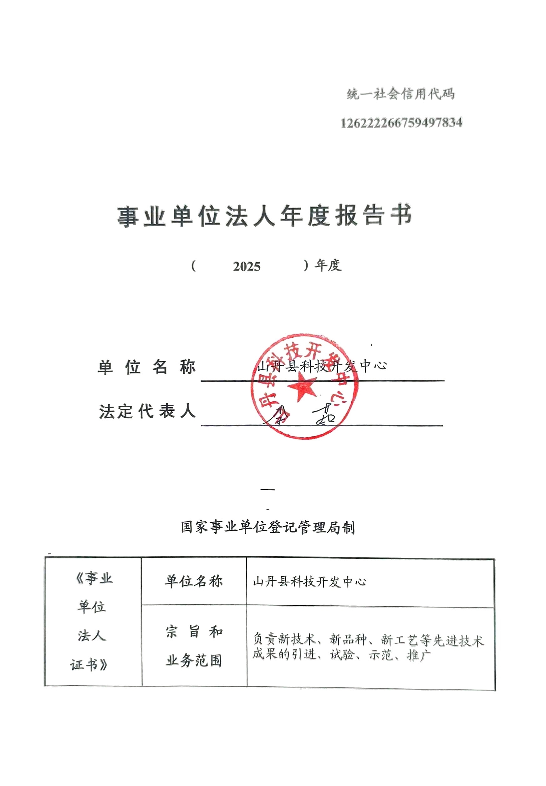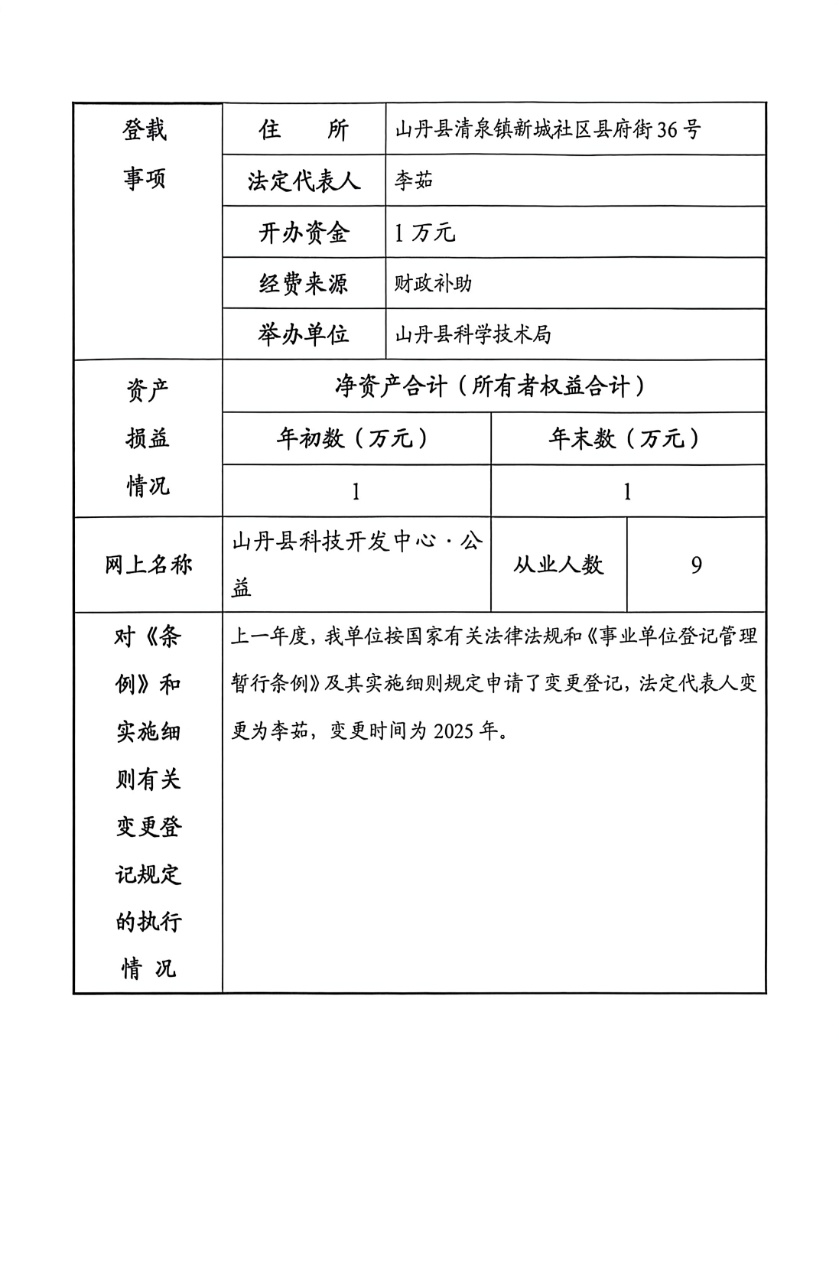 山丹县科技开发中心2025年度事业单位法人年度报告