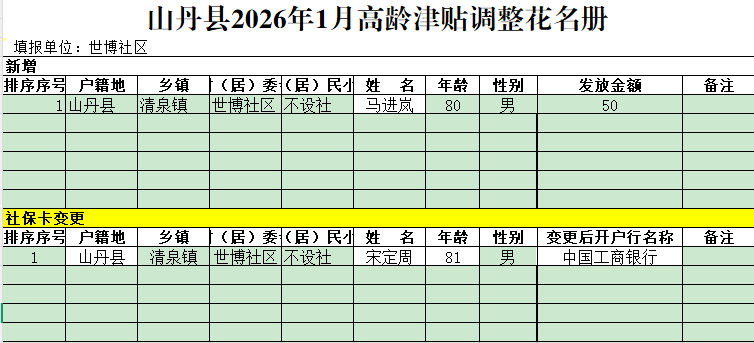 世博社区2026年1月高龄津贴调整花名册