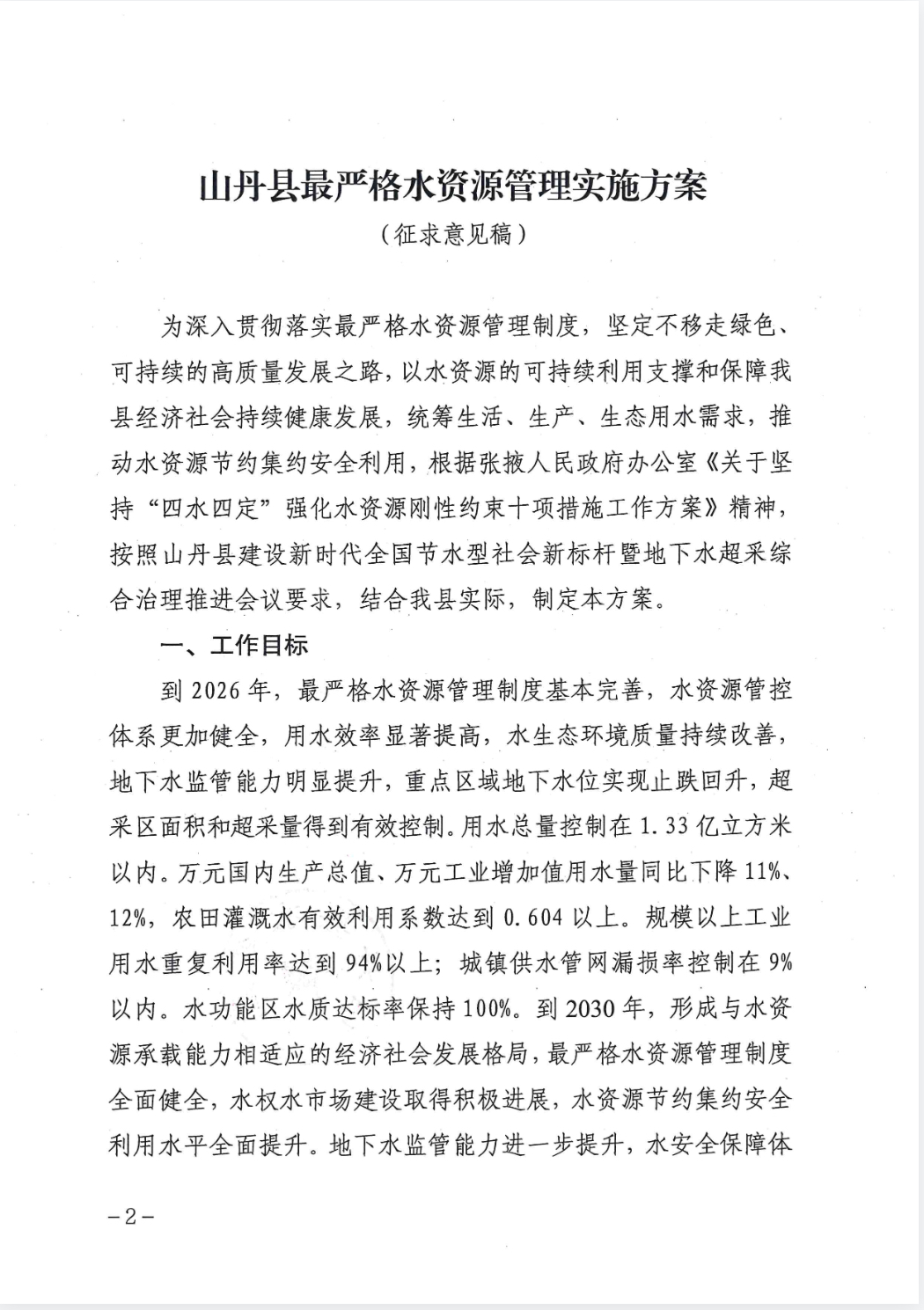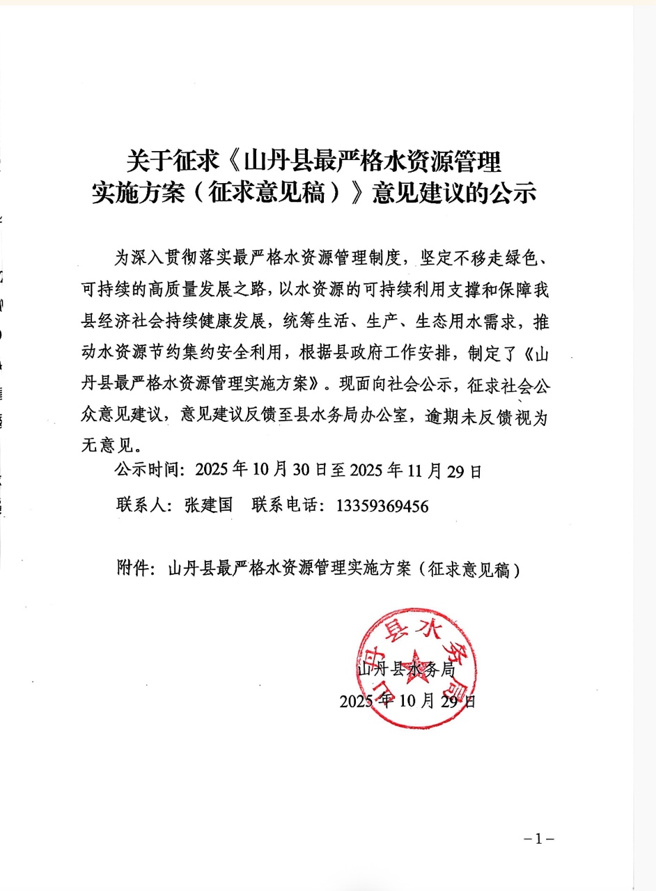关于征求《山丹县最严格水资源管理实施方案(征求意见稿)》意见建议的公示