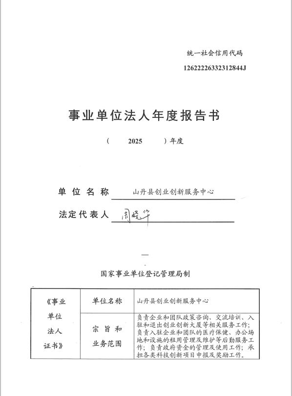 2025年度事业单位法人年度报告书(创业创新服务中心)
