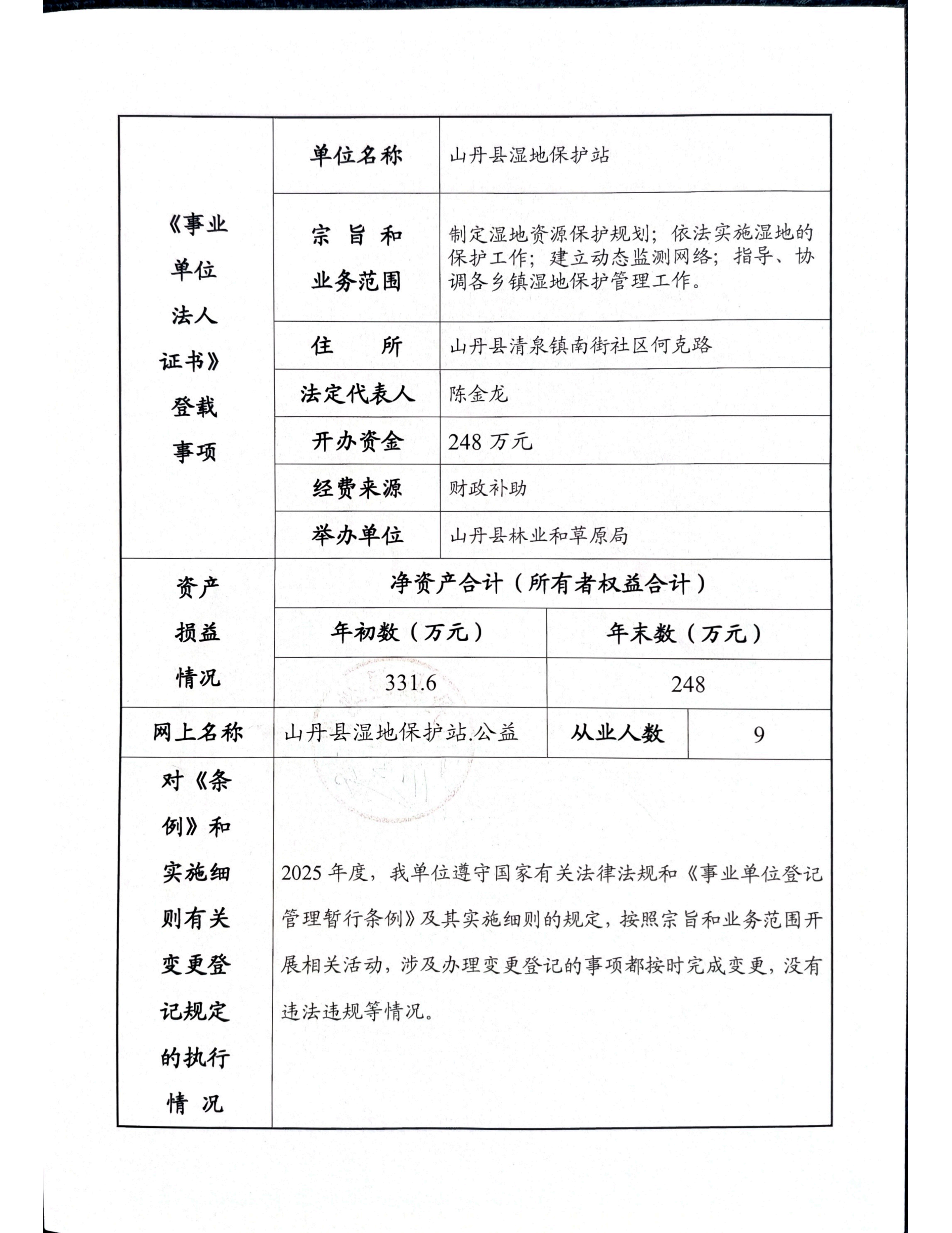 山丹县湿地保护站2025年度事业单位法人年度报告书