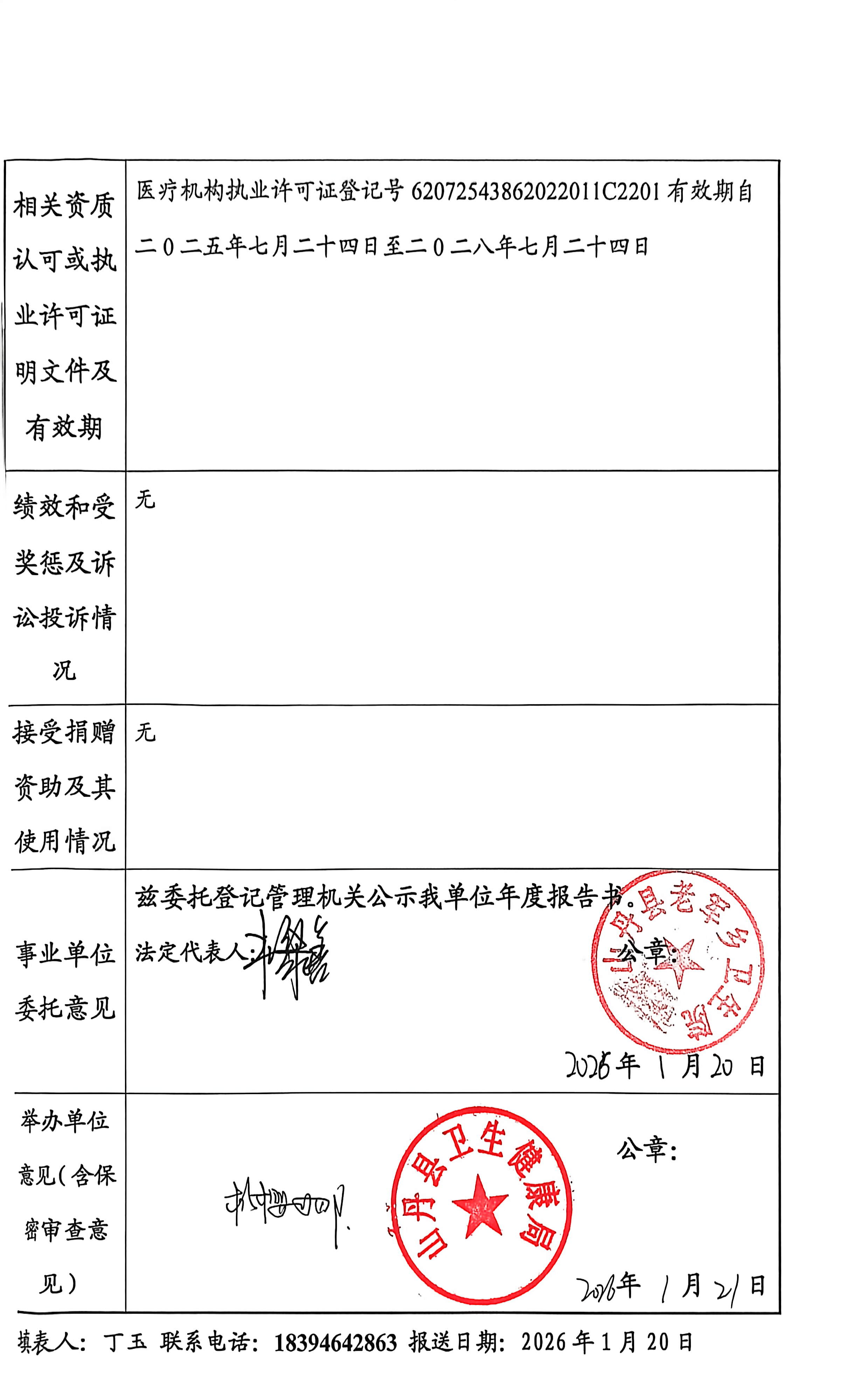 山丹县老军乡卫生院2025年度事业单位年度法人报告书