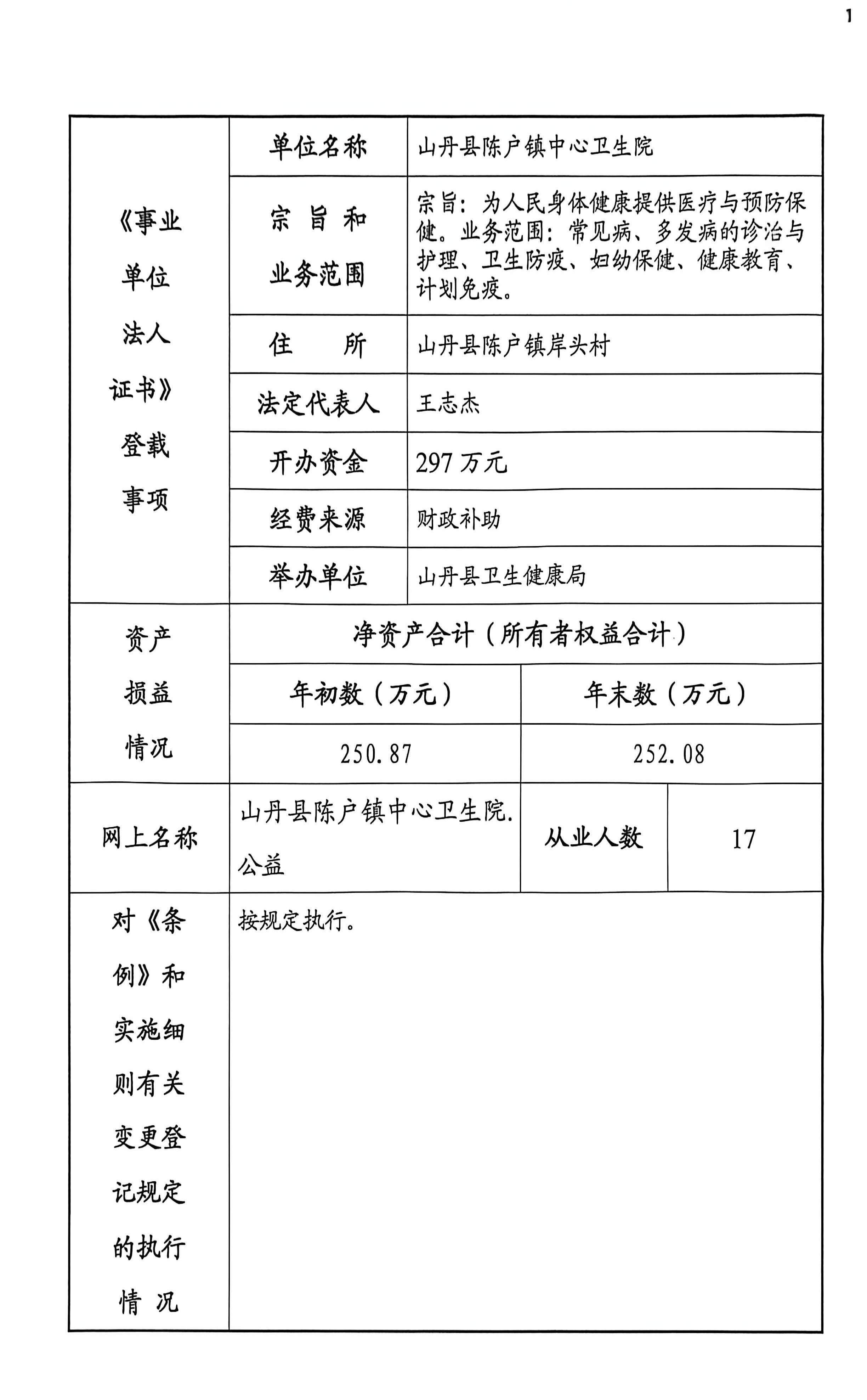 山丹县陈户镇中心卫生院2025年度事业单位年度法人报告书
