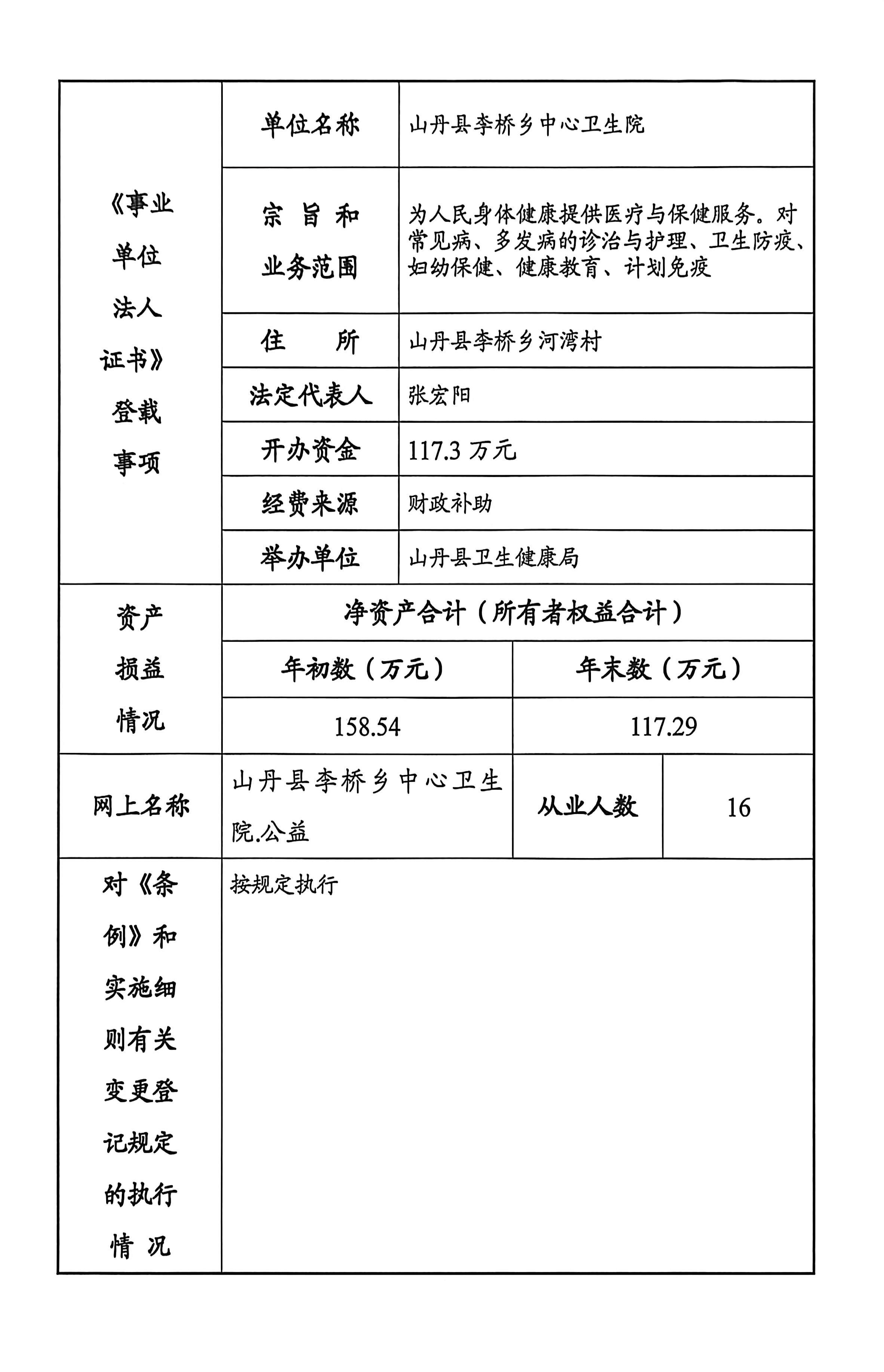 山丹县李桥乡中心卫生院2025年度事业单位年度法人报告书