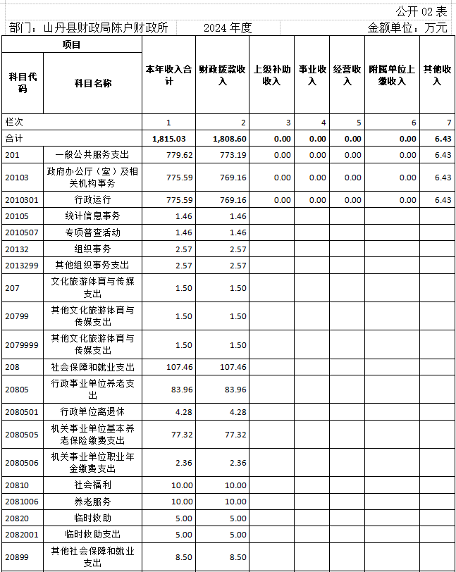 山丹县财政局陈户财政所部门决算