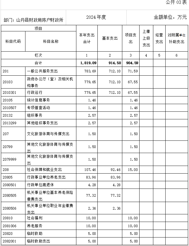 2024年度支出合计1819.09万元 ,其中:基本支出914.50万元 ,占50.27%;项目支出904.59万元 ,占49.73%。