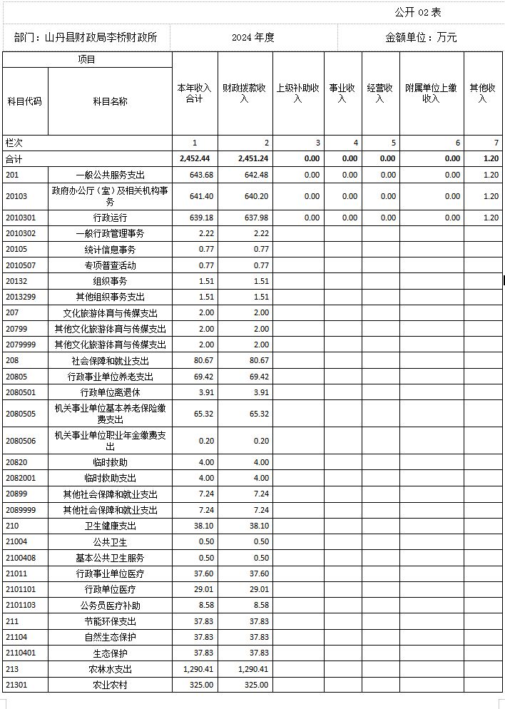 2024年度收入合计2452.44万元,其中:财政拨款收入2451.24万元,占99.95%;其他收入1.20万元,占0.05%;