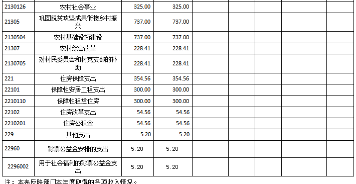 二十七、农林水支出(类)农村综合改革(款)对村民委员会和村党支部的补助(项):反映各级财政对村民委员会和村党支部的补助支出,以及支持建立县级基本财力保障机制安排的村级组织运转奖补资金。