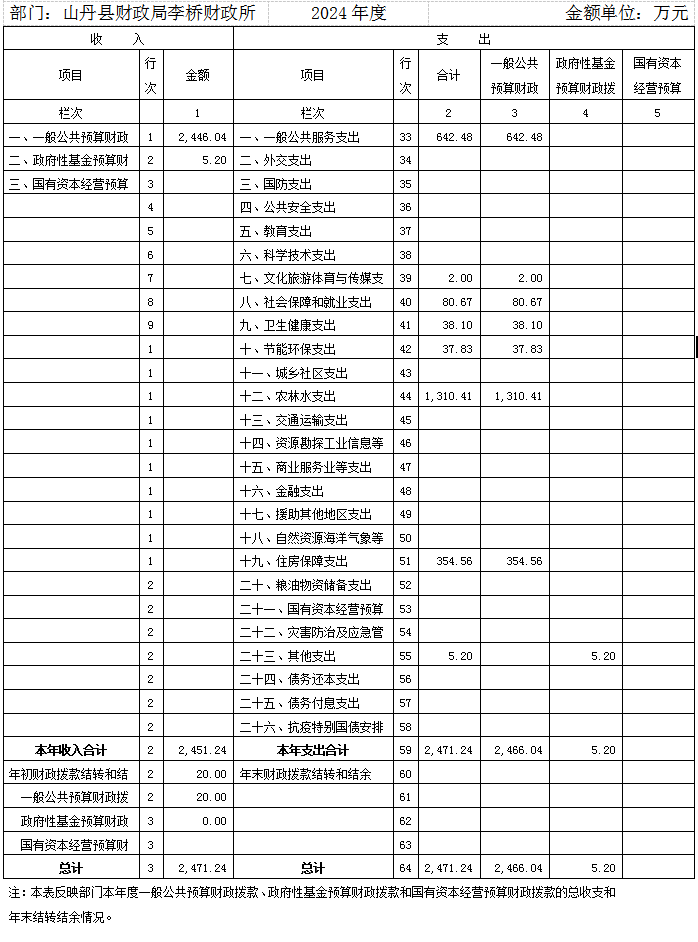 2024年度财政拨款收、支总计均为2471.24万元。与上年相比,各增加788.71万元,增长46.88%。主要原因是本年度财政拨款项目资金增加。