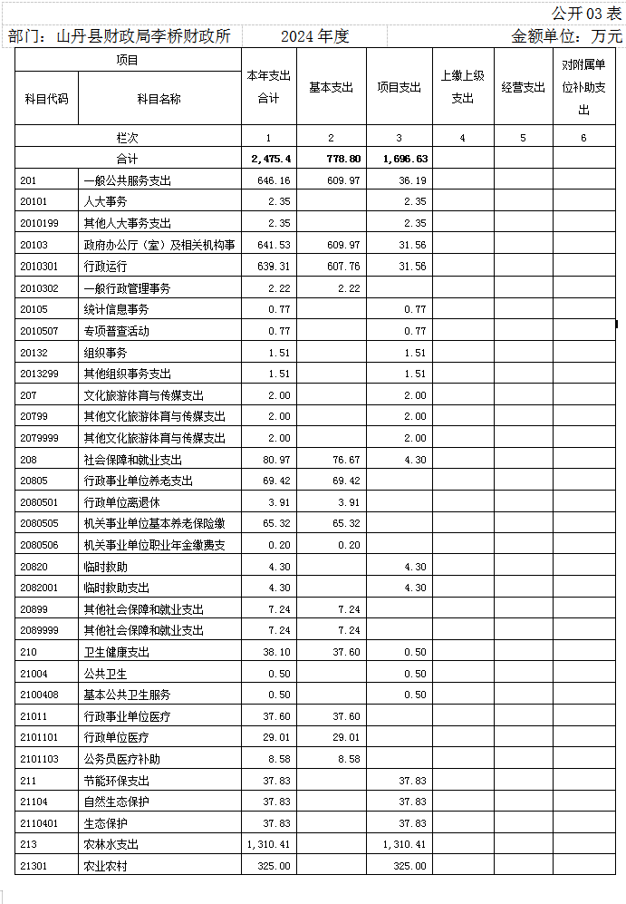 2024年度支出合计2475.42万元,其中:基本支出778.80万元,占31.46%;项目支出1696.63万元,占68.54%。