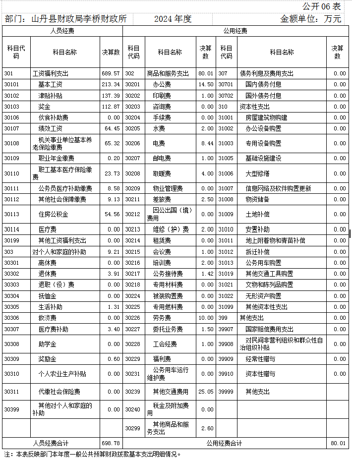 6.农林水支出年初预算数为241.39万元,支出决算为1310.41万元,完成年初预算的542.87%,决算数大于预算数的主要原因是年中拨入其他项目款:高庙农文旅融合发展产业园项目设计费,李桥乡高庙农文旅融合发展产业园项目款,山丹县李桥乡2024年以工代赈示范工程项目项目款,山丹县李桥乡2024年以工代赈示范工程项目费。
