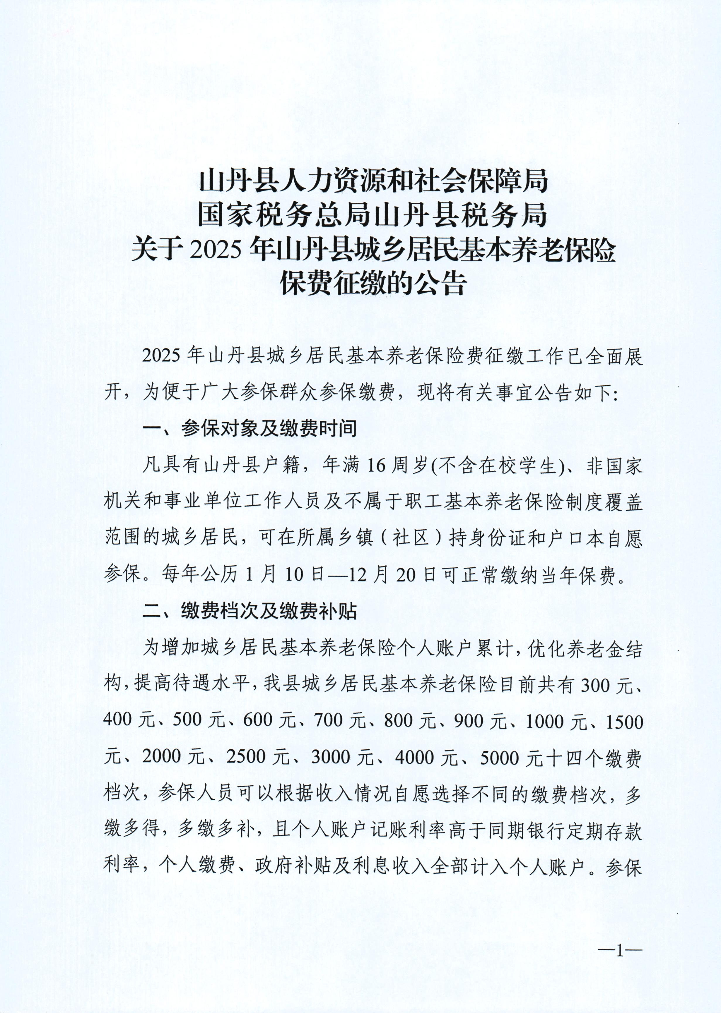 2025年城乡居民基本养老保险保费征缴公告
