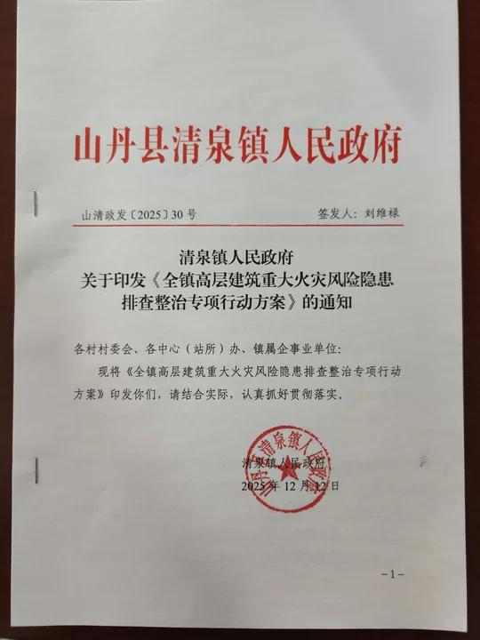 全镇高层建筑重大火灾风险隐患排查整治专项行动从即日起至2026年3月底,分三个阶段进行。