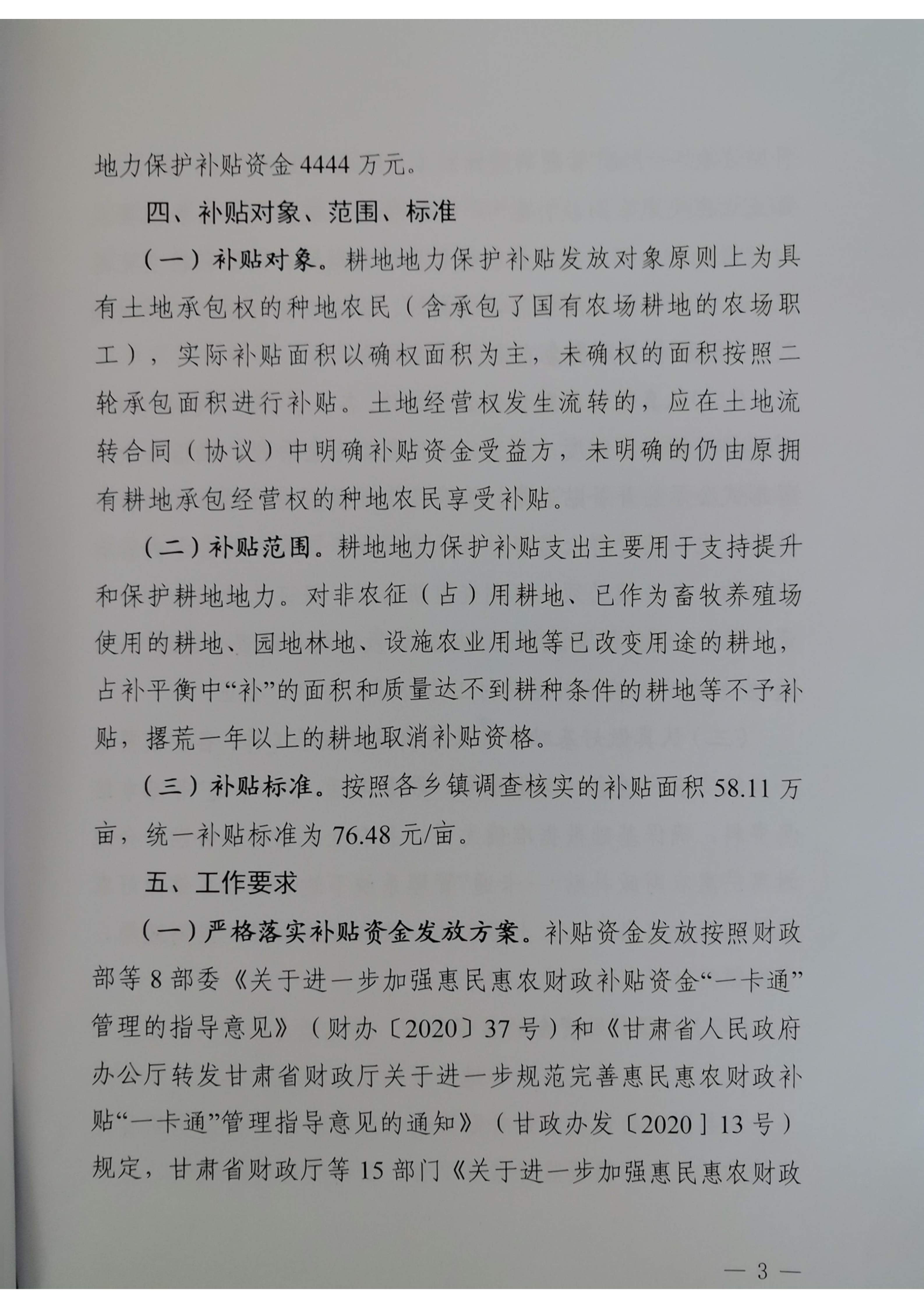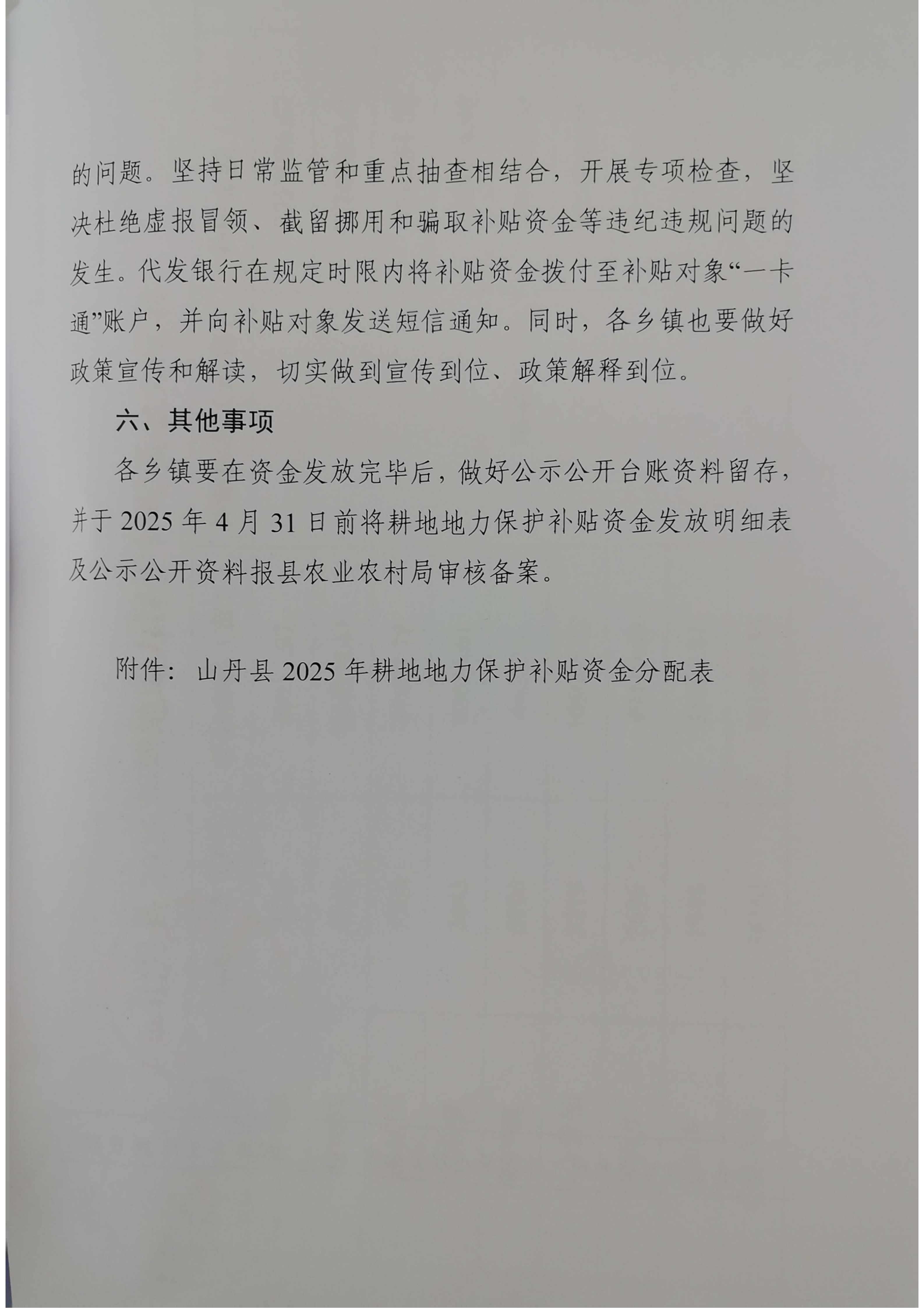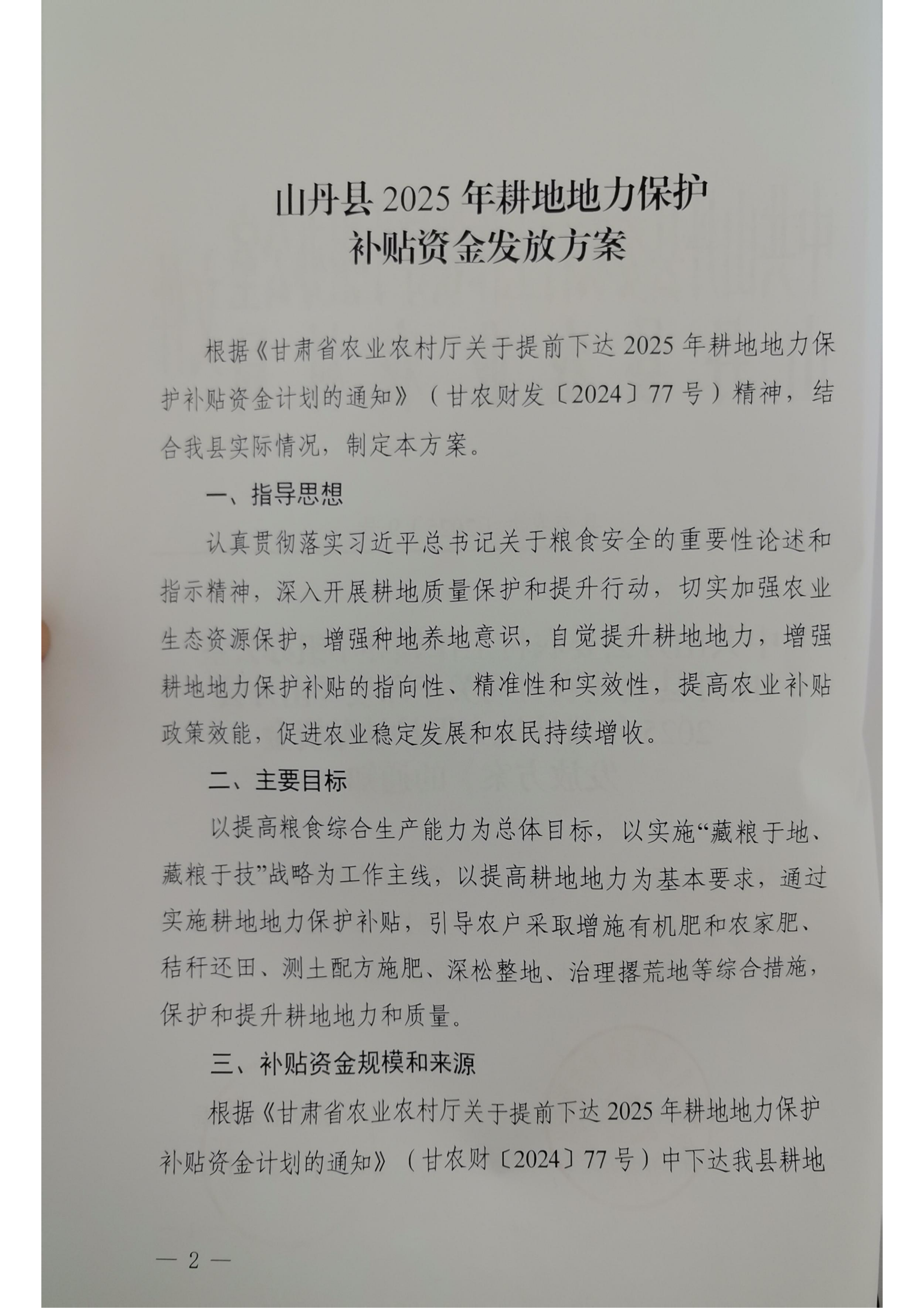 山丹县2025年耕地地力保护补贴资金发放方案