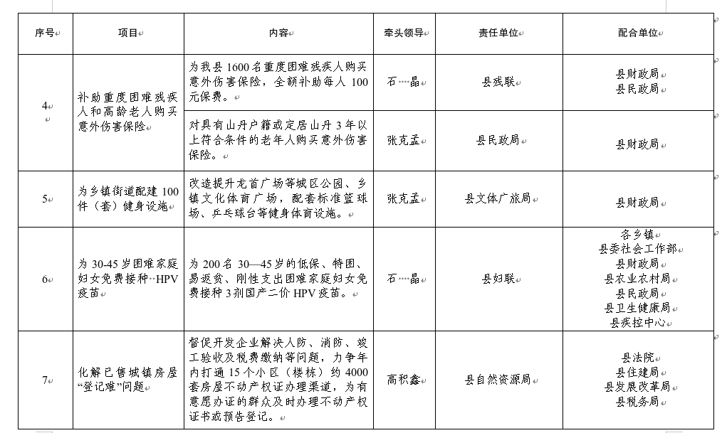 2026年,省10件民实事涉及我县9件,市12件民实事涉及我县10,县十九届人大五次会议审议通过10件县级民生实事。为确保各项任务全面落实,根据甘肃省人民政府办公厅关于印发202610件为民实事实施方案的通知》(甘政办发〔202610号)和《张掖市人民政府办公室关于印发2026年市级民生实事实施方案的通知》(张政办发〔20269号)要求,县直相关部门结合我县实际制定了2026年民生实事实施方案,政府同意,现印发你们,请认真组织实施。