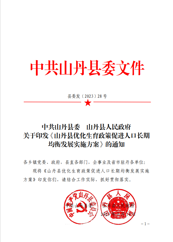 关于印发《山丹县优化生育政策促进人口长期均衡发展实施方案》的通知