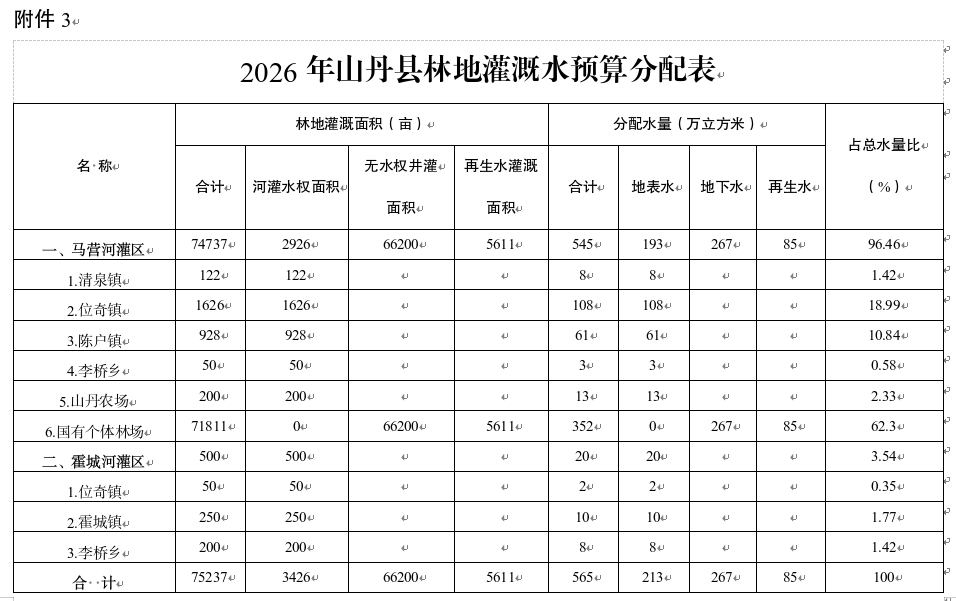 3.2026山丹县林地灌溉水预算分配表