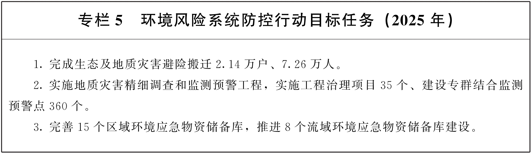 (二十四)提升生态环境风险防控能力。健全跨部门适应气候变化协调工作机制,完善跨领域跨地区会商研判制度。强化危险废物、尾矿库、重金属等领域环境隐患排查和风险管控。完善“一河一策一图”应急响应方案,深化成果应用。完成黄河干流及主要支流环境风险调查,探索在黄河、长江流域开展流域级风险防控工程体系建设。及时妥善科学处置各类突发环境事件。(责任单位:省委国安办、省公安厅、省自然资源厅、省生态环境厅、省水利厅、省应急厅、省林草局、省气象局)