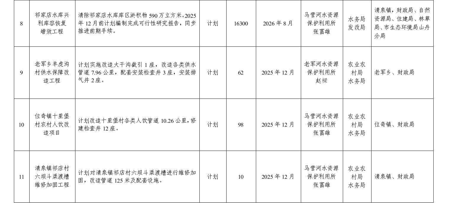 配合单位:各乡镇人民政府,县发改局、县财政局、县农业农村局、县自然资源局、县住建局、市生态环境局山丹分局、甘肃水务山丹供水有限责任公司