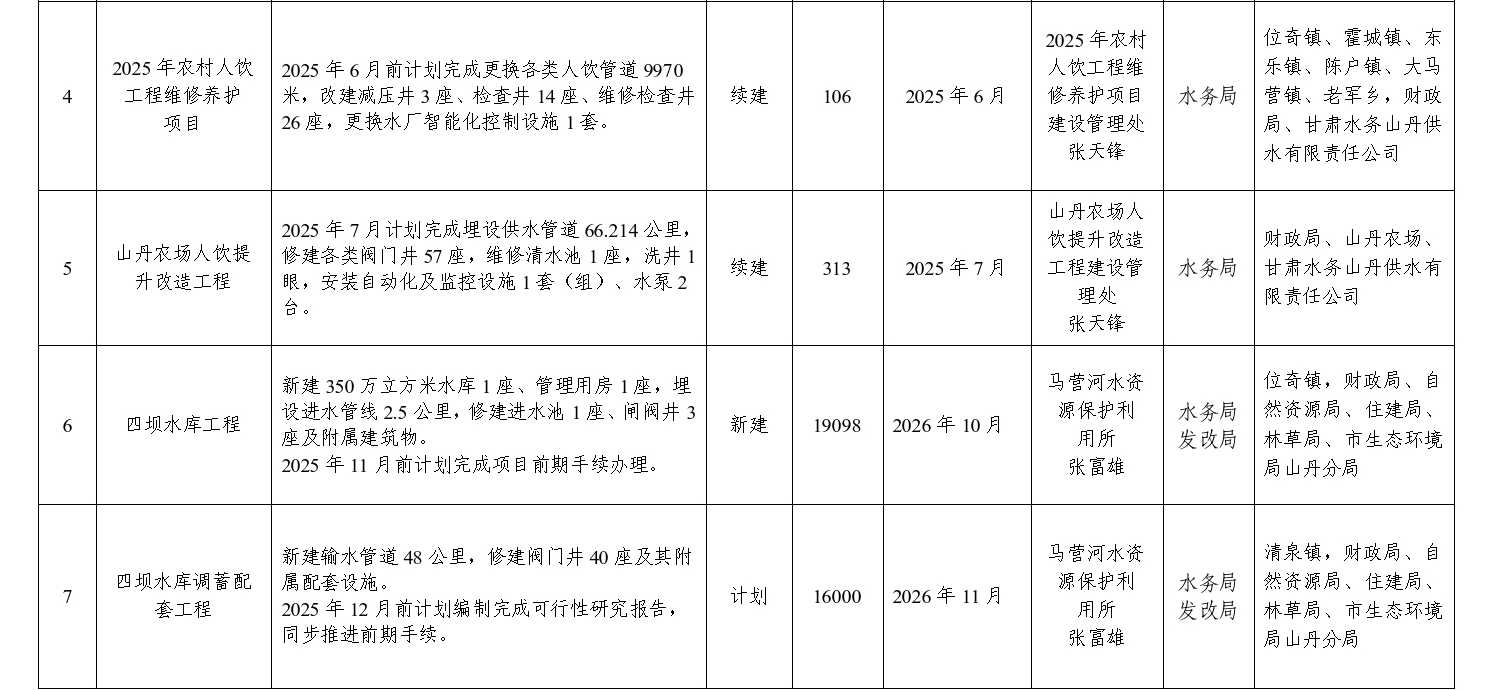 配合单位:各乡镇人民政府,县农业农村局、县住建局、县应急管理局、甘肃水务山丹供水有限责任公司