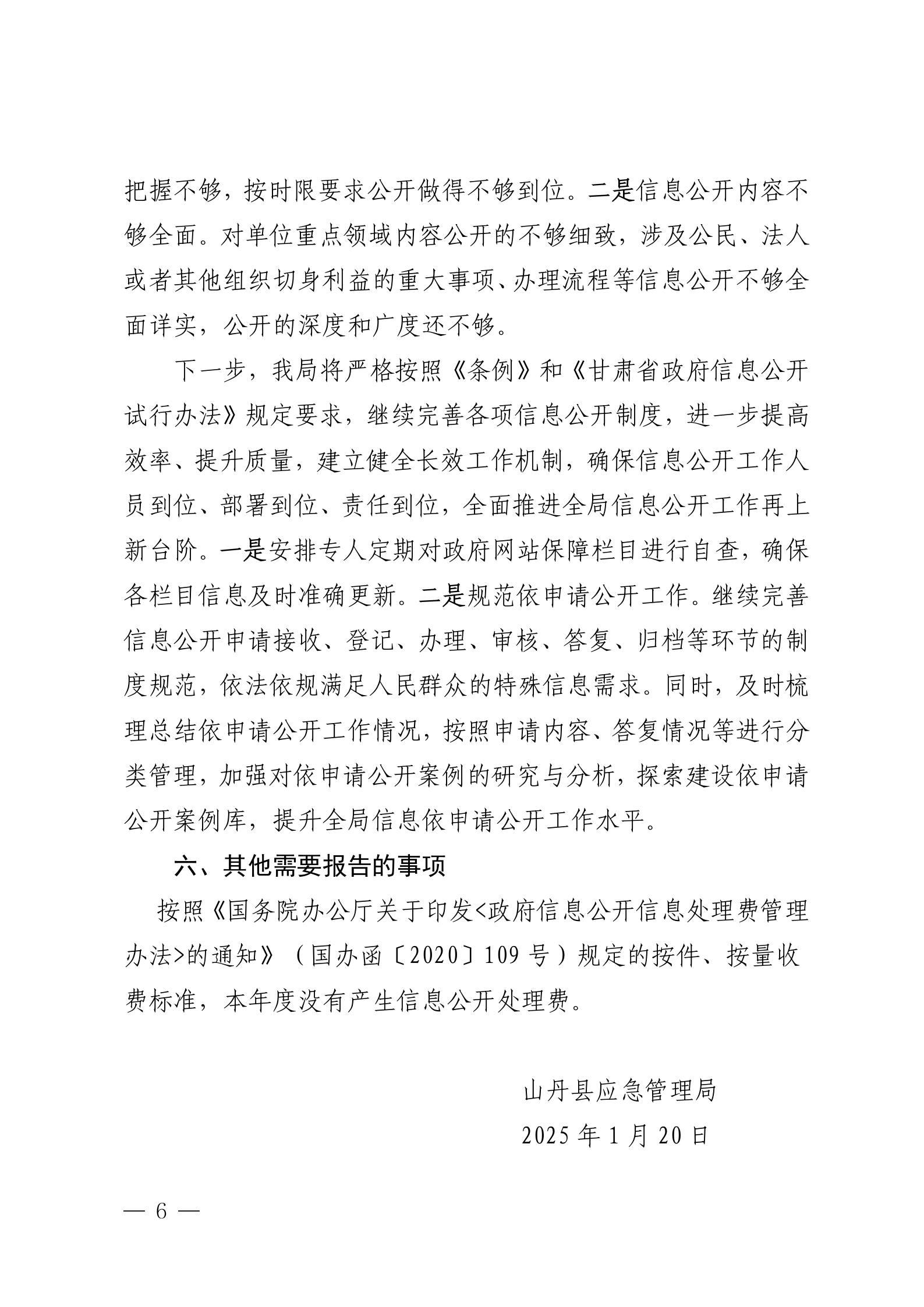 山丹县应急管理局2024年政府信息公开工作年度报告