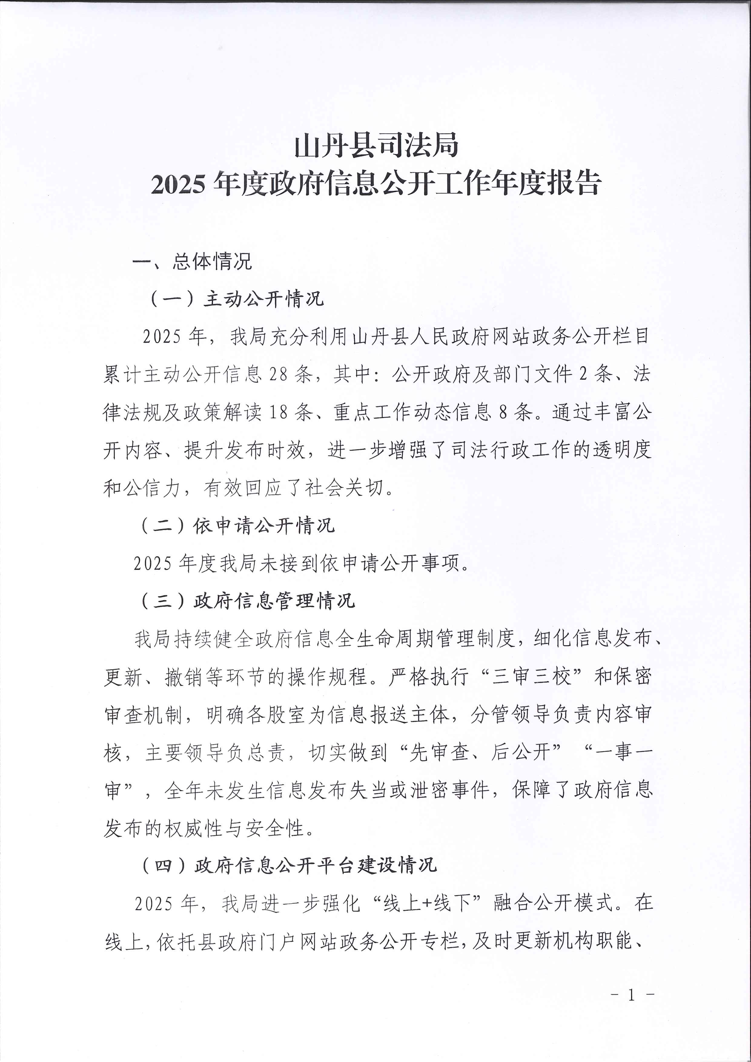 山丹县司法局2025年度政府信息公开工作年度报告