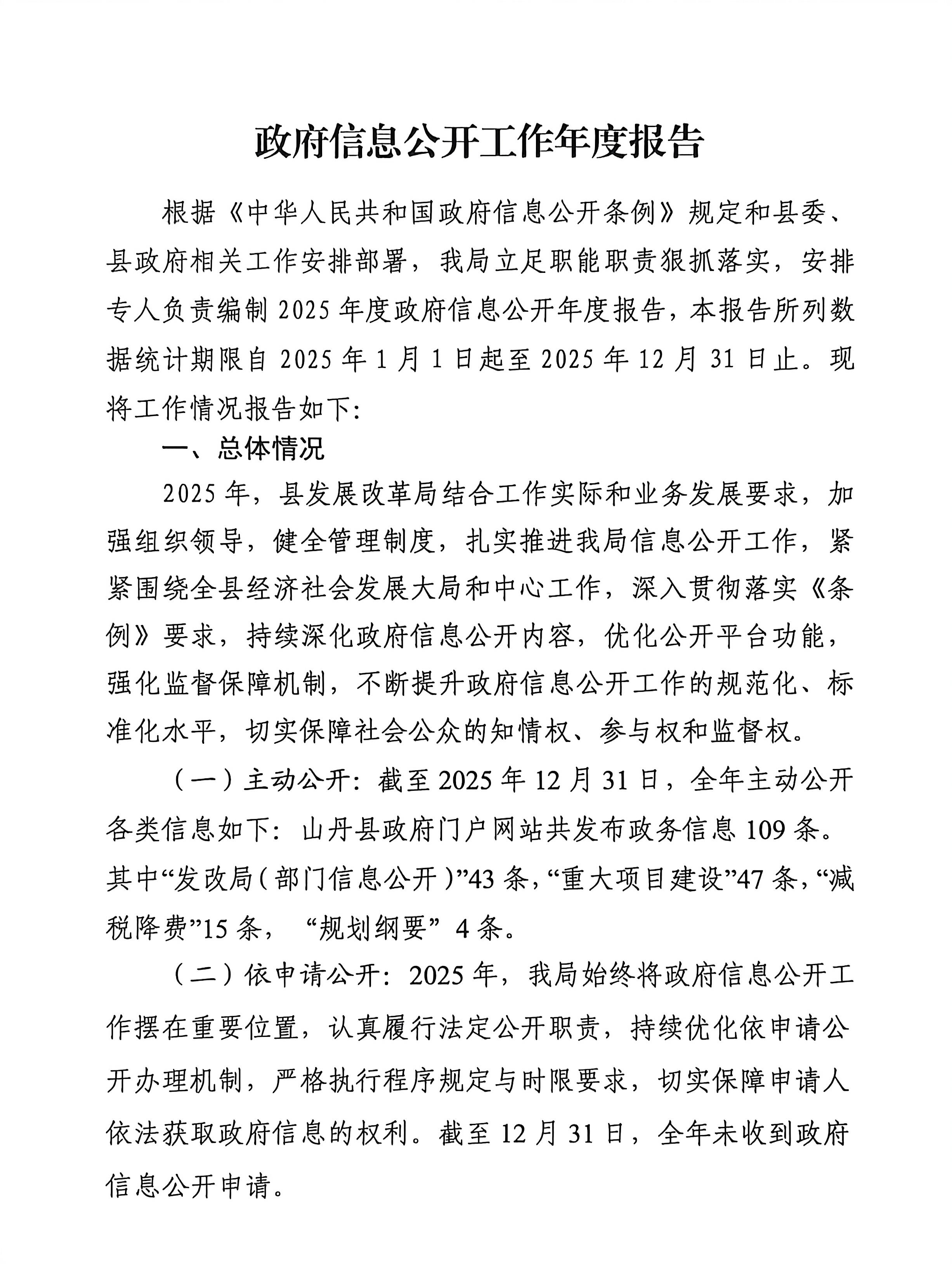 山丹县发展和改革局2025年政府信息公开工作年度报告