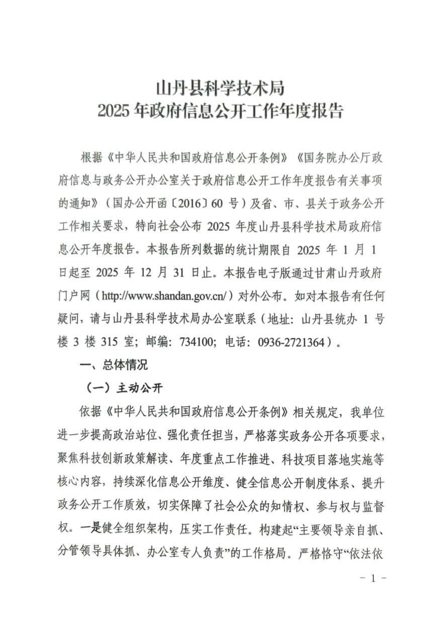 山丹县科学技术局2025年政府信息公开工作年度报告