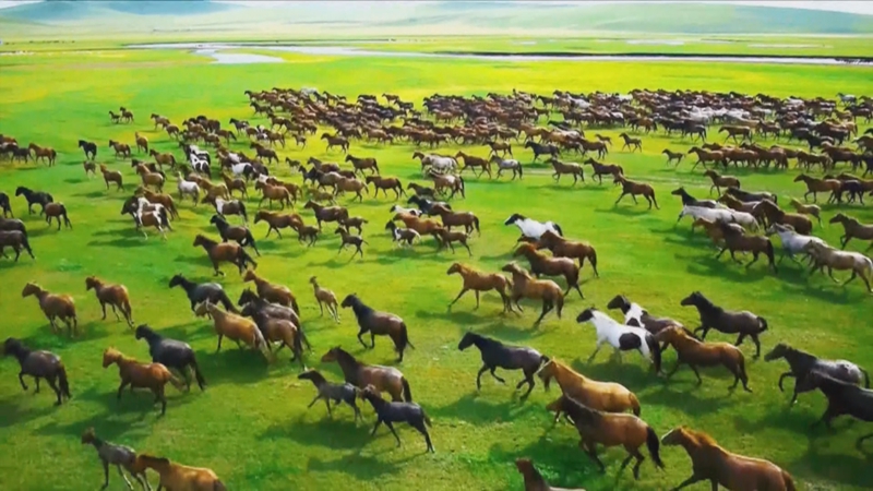 焉支山下,夕阳为广袤的草原铺上一层金色。牧马人挥动长鞭,驱赶着数百匹骏马奔腾而过,蹄声如雷,震起千年尘埃,与祁连山的雪线勾勒出河西走廊最纤细的腰身。