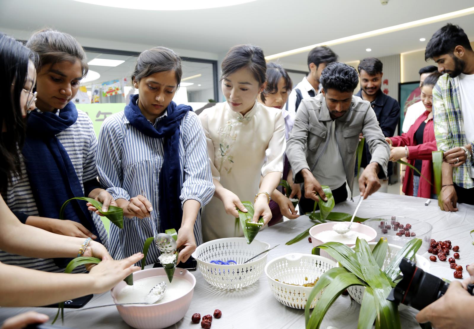 “这是我第一次包粽子,非常有趣!虽然颇具挑战,但很有成就感。”留学生韩墨兴奋地展示着自己的“作品”,“亲手制作让我更深刻地体会到中国传统节日——端午节的文化内涵,也感受到了中国人民的热情和家庭的温暖,这真是一次难忘的体验。”