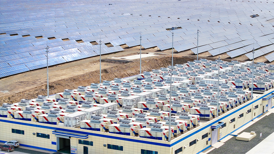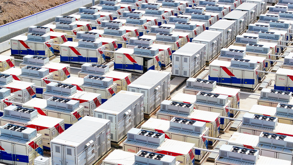 6月3日,在张掖市山丹县东乐北滩百万千瓦级光伏发电基地,50MW/200MWH中帛源全钒液流储能项目现场,一排排整齐大型“充电宝”矗立在光伏集阵中,为电网稳定运行注入新动力。