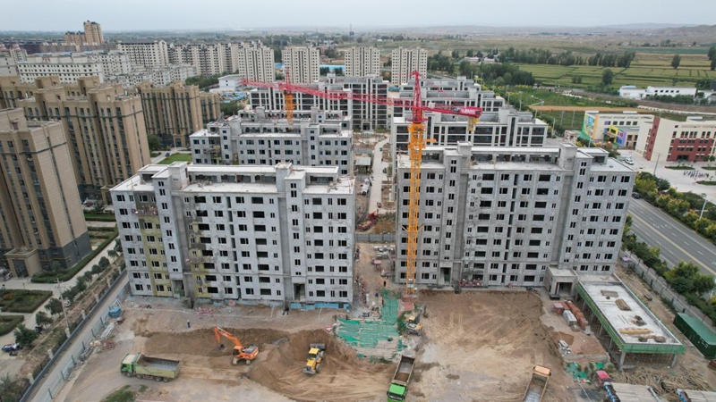 山丹恒昌学府C区建设项目负责人 王春山:目前,我们恒昌学府的二期项目今年一共建设了四栋楼,5A、6号、8号、9号,目前我们施工的节点已经到了5A和6号楼内外墙的抹灰,7号和8号内墙也在抹灰,5A这栋楼也开始了外墙的涂料,这是目前施工的总体进度。