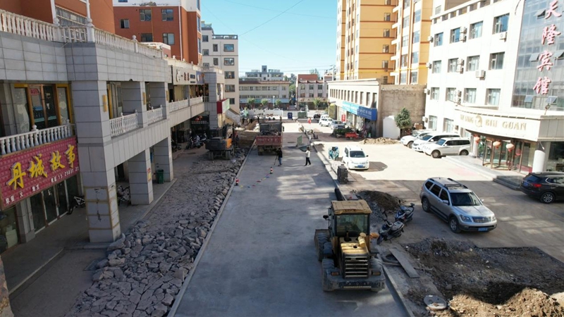 在山丹县金街至焉支大道改造工程现场,以往坑洼不平、尘土飞扬的路面已被开挖,施工机械与工人密切配合,正在进行地砖铺设前的准备工作。施工现场紧张有序,沿街商户潘翠对此充满期待。她站在店门前,望着忙碌的工地感慨道:“以前一刮风,门前未硬化的路面就扬起大量灰尘,直接影响店内环境。这条路改造得太及时了,听说还要安装路灯,到时候整条路亮堂起来,对周边居民出行也会更方便。以前大家总抱怨这里路况差,现在总算有了盼头。”