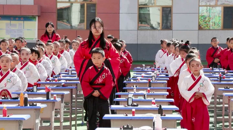 秋阳泼金,丹桂缀香。10月17日,山丹县东街小学的校园内洋溢着庄重而温暖的文化气息,一场别开生面的“开笔礼”仪式在这里隆重举行。一年级的稚嫩学子们身着汉服,神情专注,在师长的引领下,正式开启人生求知的崭新篇章。