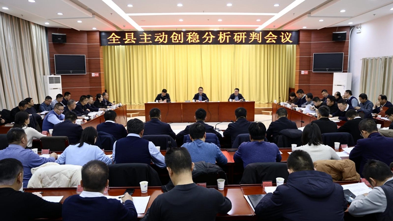 12月26日,县委书记张伟主持召开全县主动创稳工作分析研判会议。他强调,要深入贯彻落实习近平总书记关于维护社会稳定的重要指示批示精神和省委、市委关于主动创安主动创稳的工作要求,紧盯岁末年初关键节点,强化源头防控,全面做好矛盾风险排查化解,努力以高水平安全稳定保障全县经济社会高质量发展。县领导樊有鹤、高积鑫、李云、张永盛、李辉、石晶参加会议。